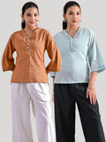 Pack Of 2 Brick Red And Ice Blue Handloom Cotton Anchor Thread Designer Tops