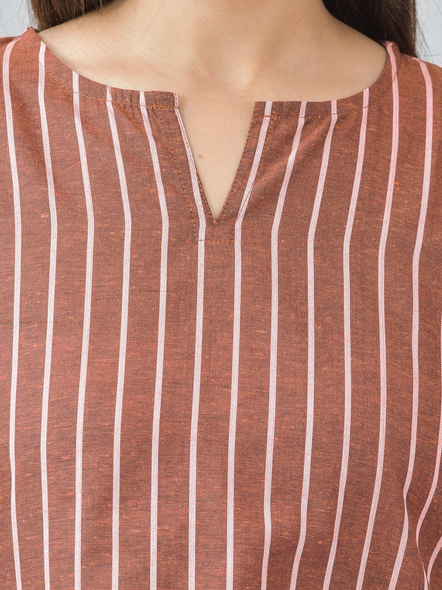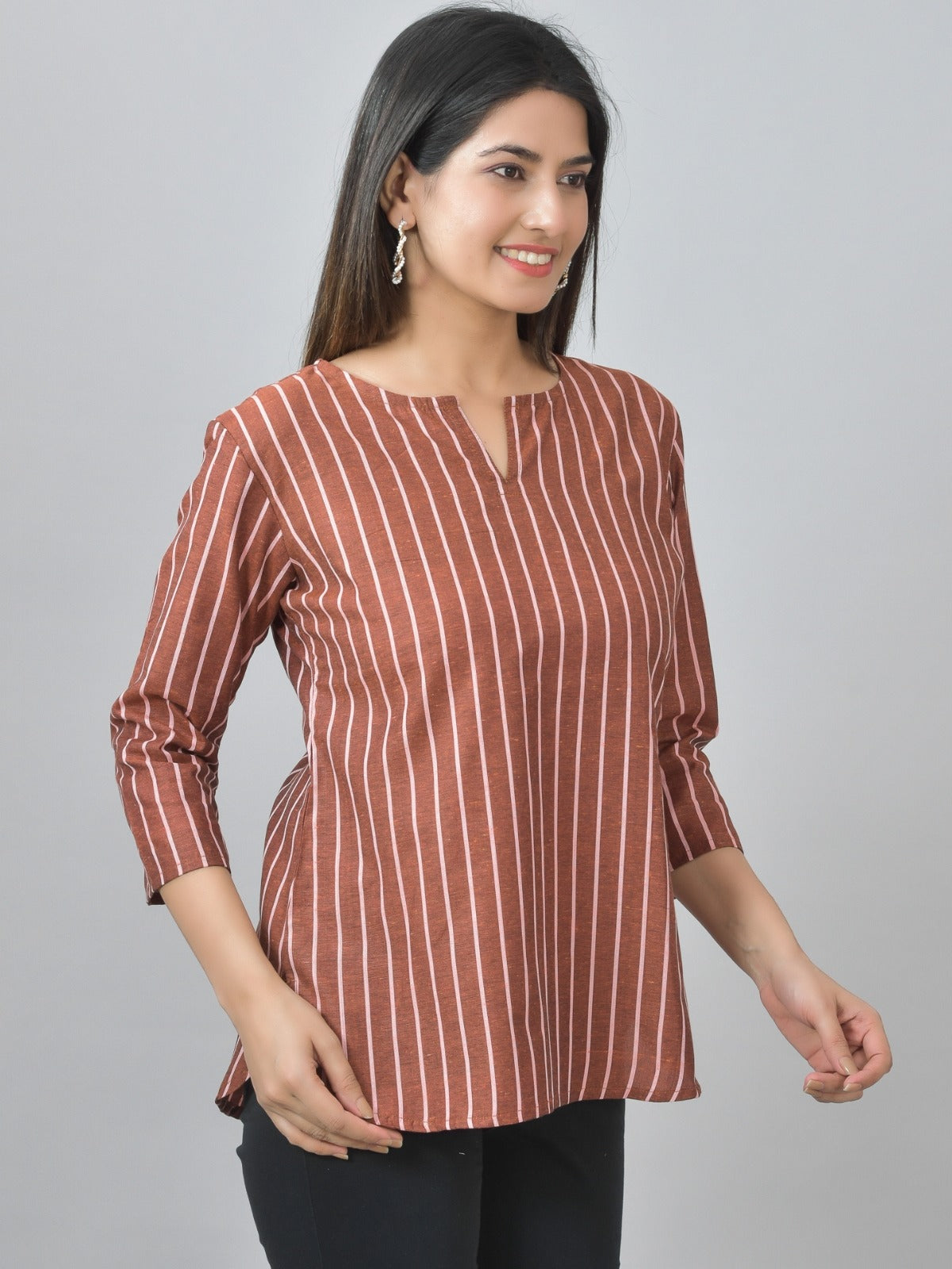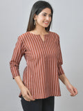 Womens Regular Fit Dark Brown Single Stripe Cotton Top
