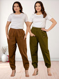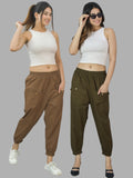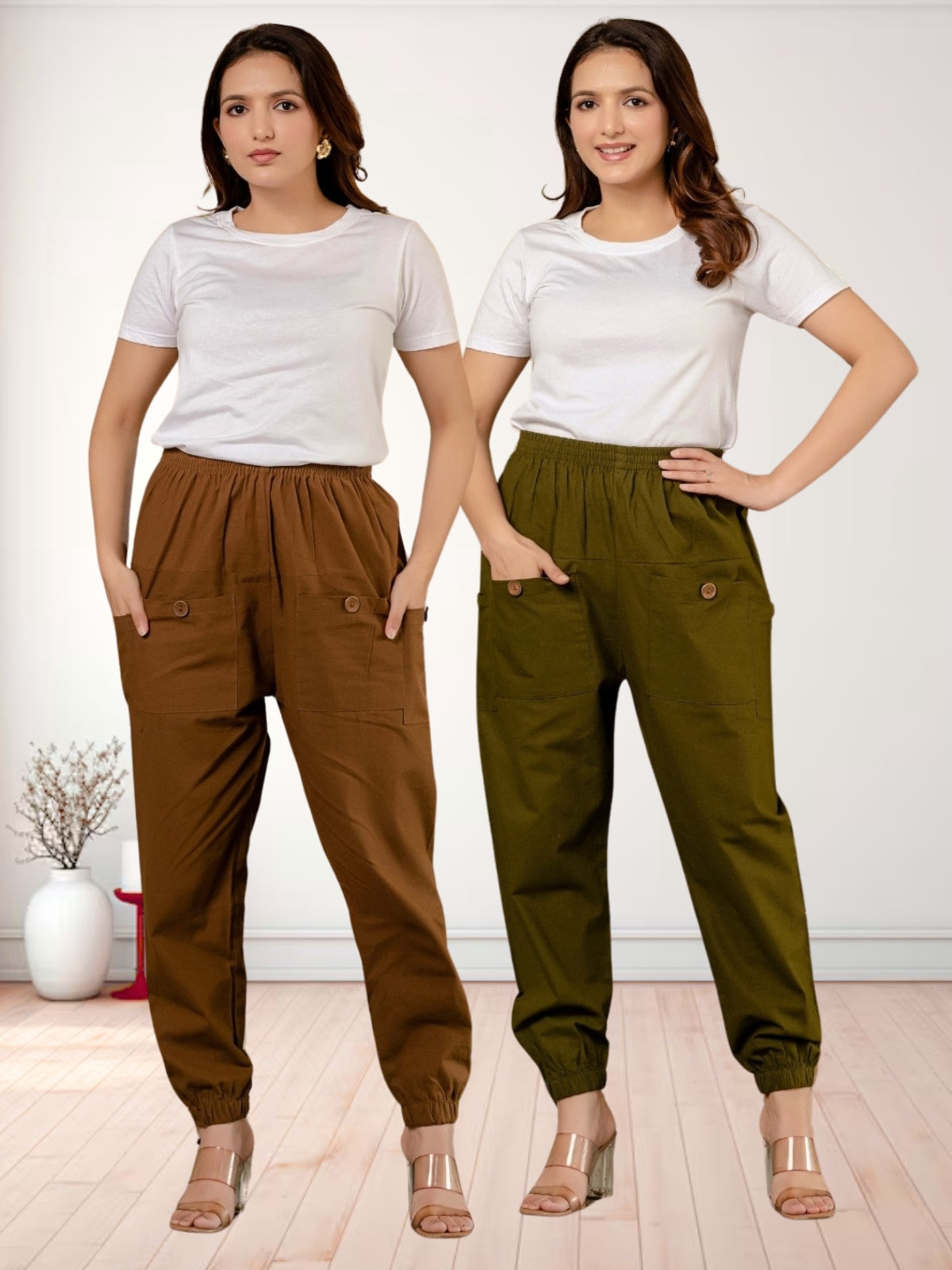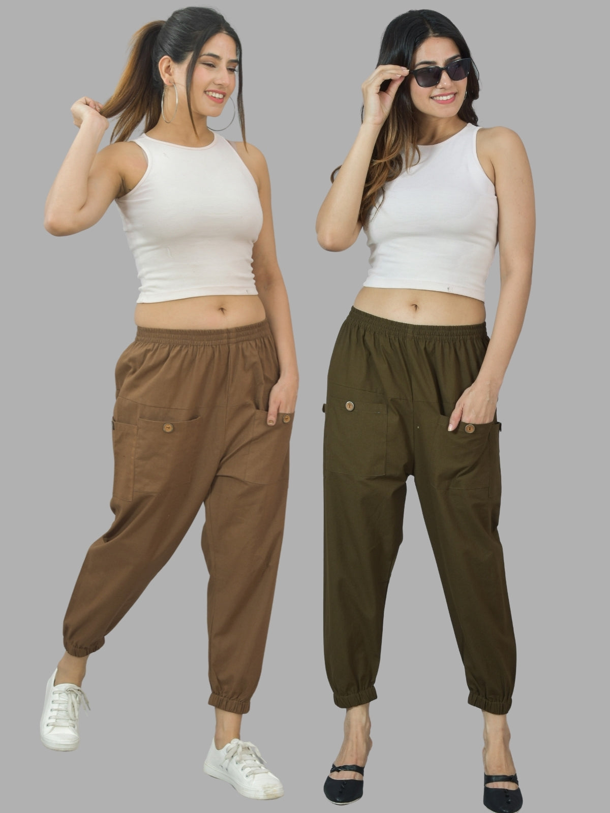 Combo Pack Of Womens Brown And Dark Green Four Pocket Cotton Cargo Pants