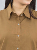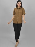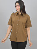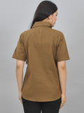 Women Solid Brown Half Sleeve Spread Collar Cotton Shirt