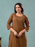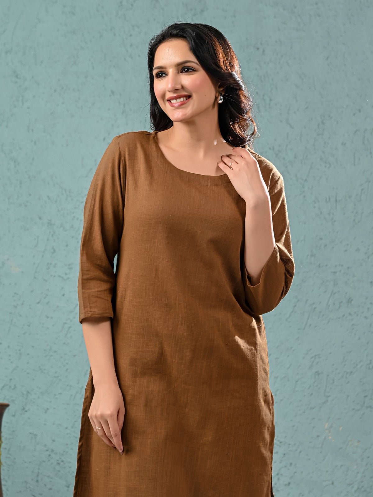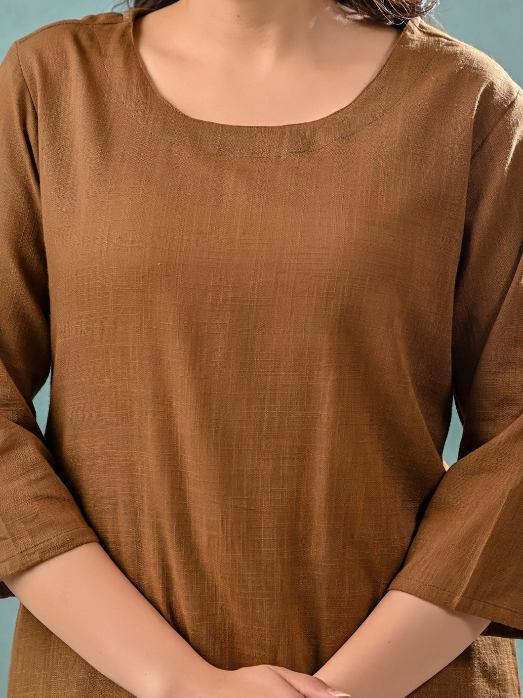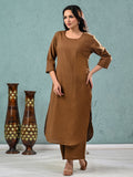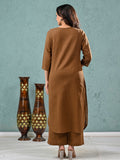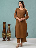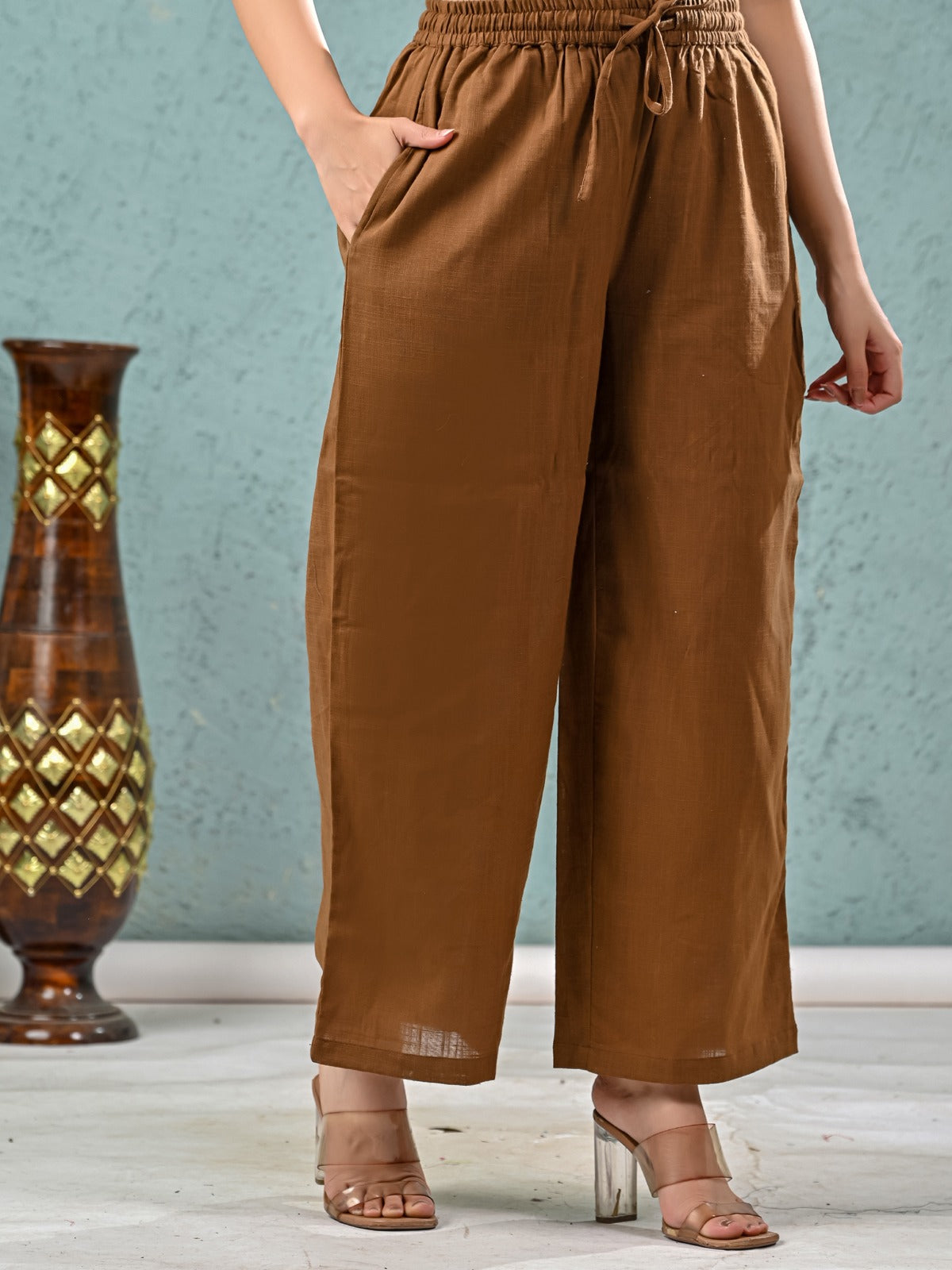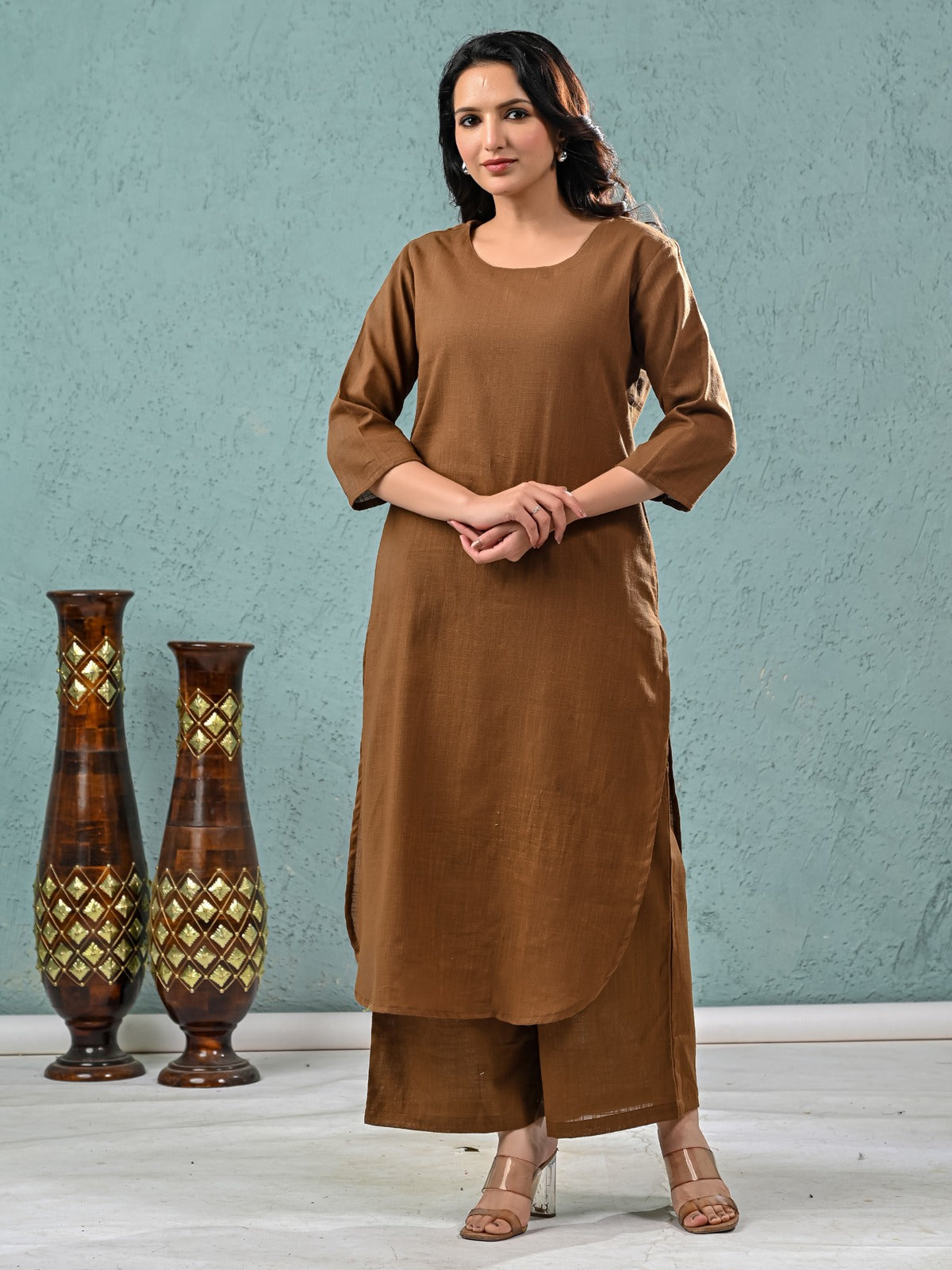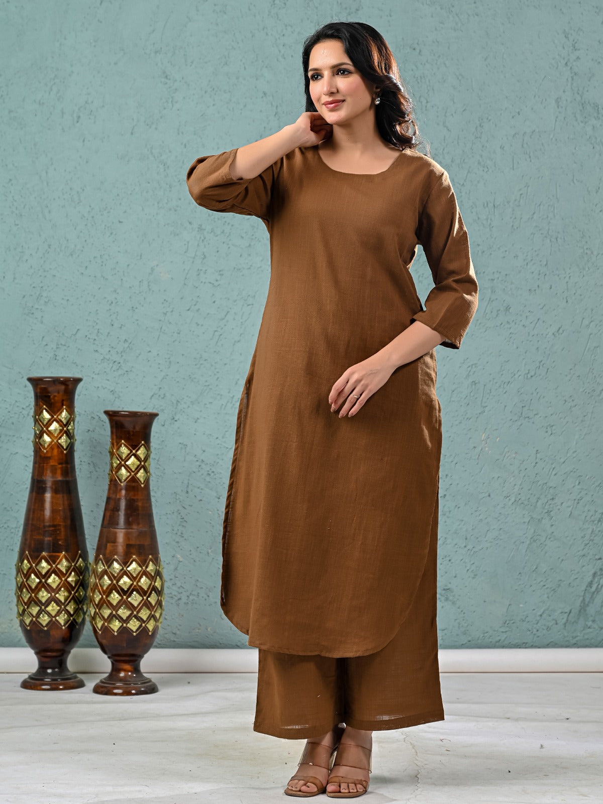 Womens Solid Brown Cotton Kurta Plazzo Set