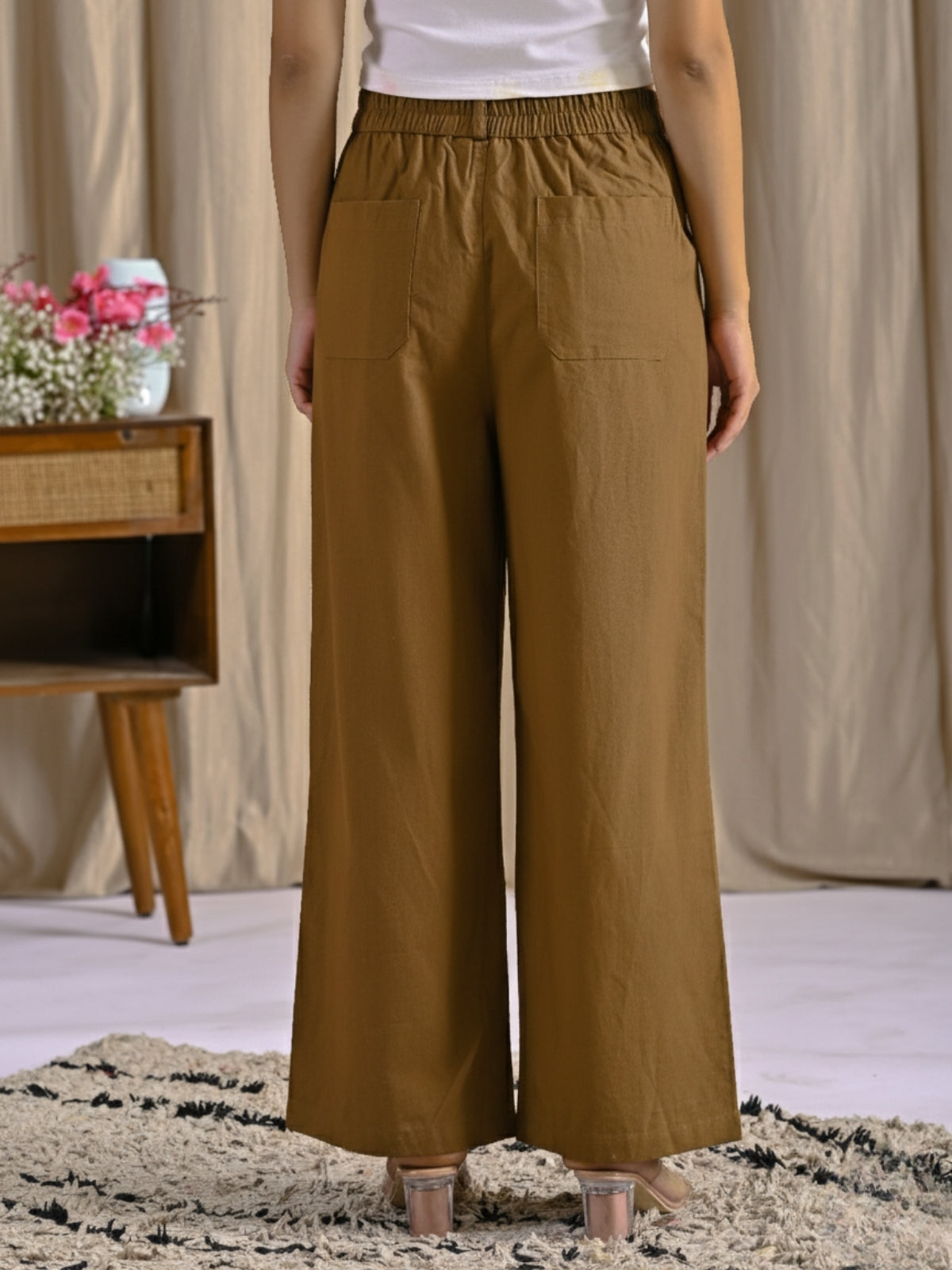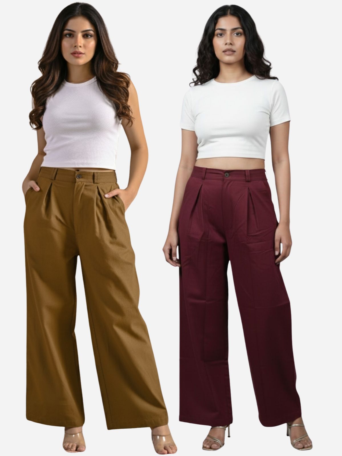 Pack Of 2 Brown And Wine Women Cotton Wide Leg Pants