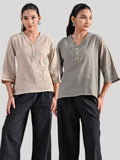 Pack Of 2 Chiku And Ocian Blue Handloom Cotton Anchor Thread Designer Tops