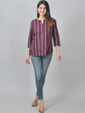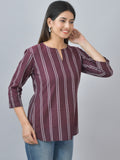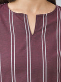 Womens Regular Fit Coffee Double Stripe Cotton Top
