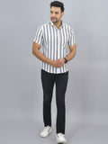 Our Mens Regular Fit Half Sleeves Striped Cotton Casual Shirts are the elevation of casual elegance, add them to your collection to uplift it. This shirts breathable cotton fabric keeps you fresh all day, and its classic regular cut is designed for comfort and style. With our vertical stripes, which come in an array of striking colours, you may experiment with different looks. These shirts are ideal for weekend get-togethers or informal outings since they seamlessly combine contemporary styles with classic appeal. For the style-forward man, its a wardrobe must since the finest cotton guarantees a soft and comfortable feel. Get these shirts now to reinvent your casual look—ease and style meet in a variety of striped apparel. Dress to impress and stand out with confidence.
