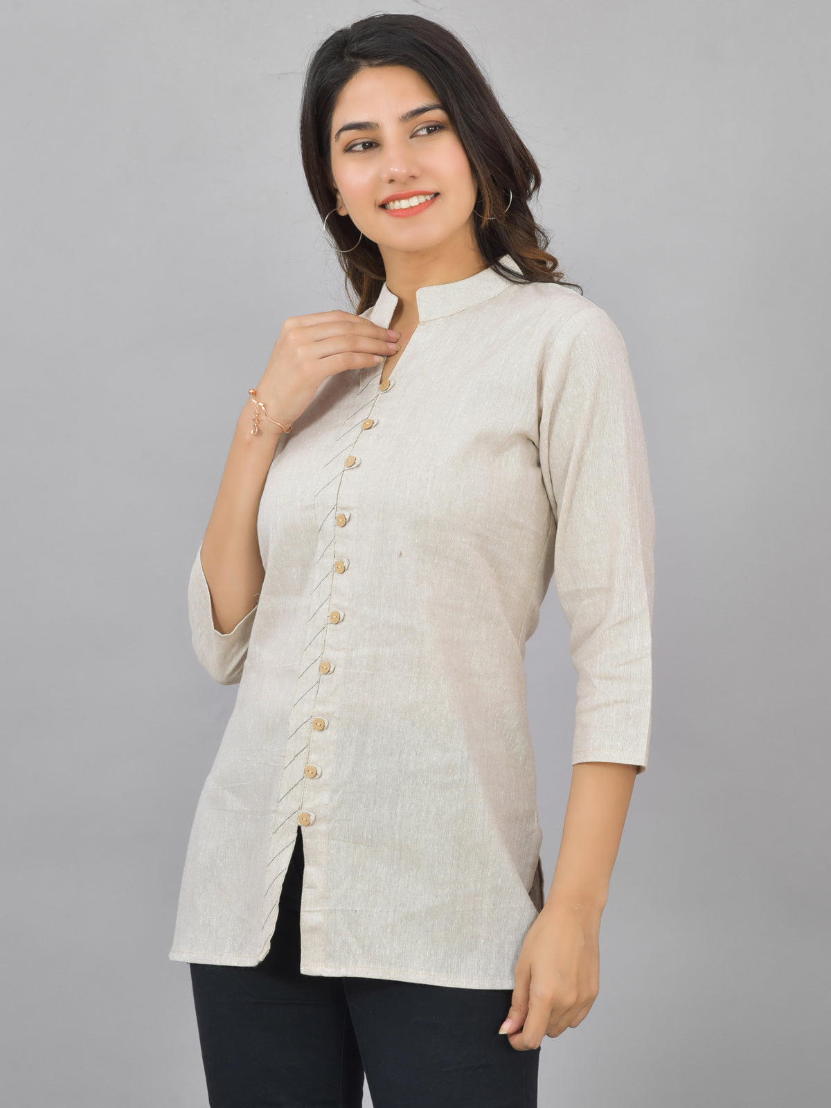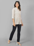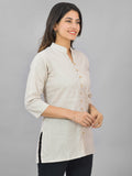 Womens Cream Woven Design Handloom Cotton Frontslit Short Kurti