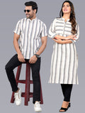 Ethnic Wear Couple Dress Cream Stripe Kurta Kurti Set
