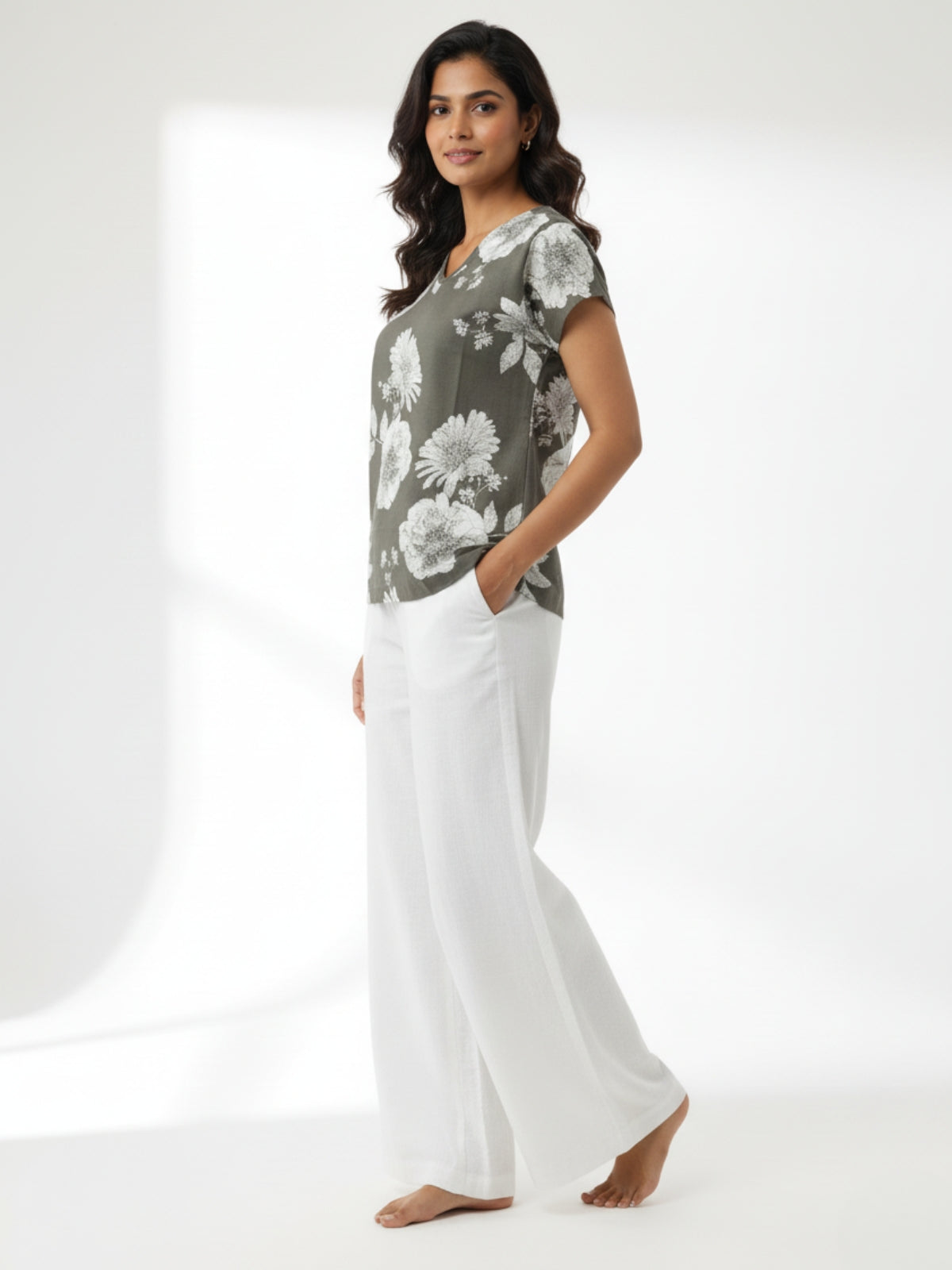Elevate your everyday style with this women’s printed V-neck cotton flex top and bottom set. Designed for comfort and elegance, this outfit features a soft cotton flex fabric that feels light and breathable all day long. The V-shaped neckline and half sleeves add a touch of chic simplicity, while the small side cut and hip-length design offer a flattering, modern silhouette. Perfect for casual outings, office wear, or relaxed weekends, this versatile co-ord set combines traditional prints with a trendy fit. Stay stylish and comfortable effortlessly with this beautiful printed cotton flex top and bottom set.