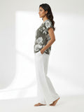 Cream Airy Linen Cotton Printed Short Kurti/Top