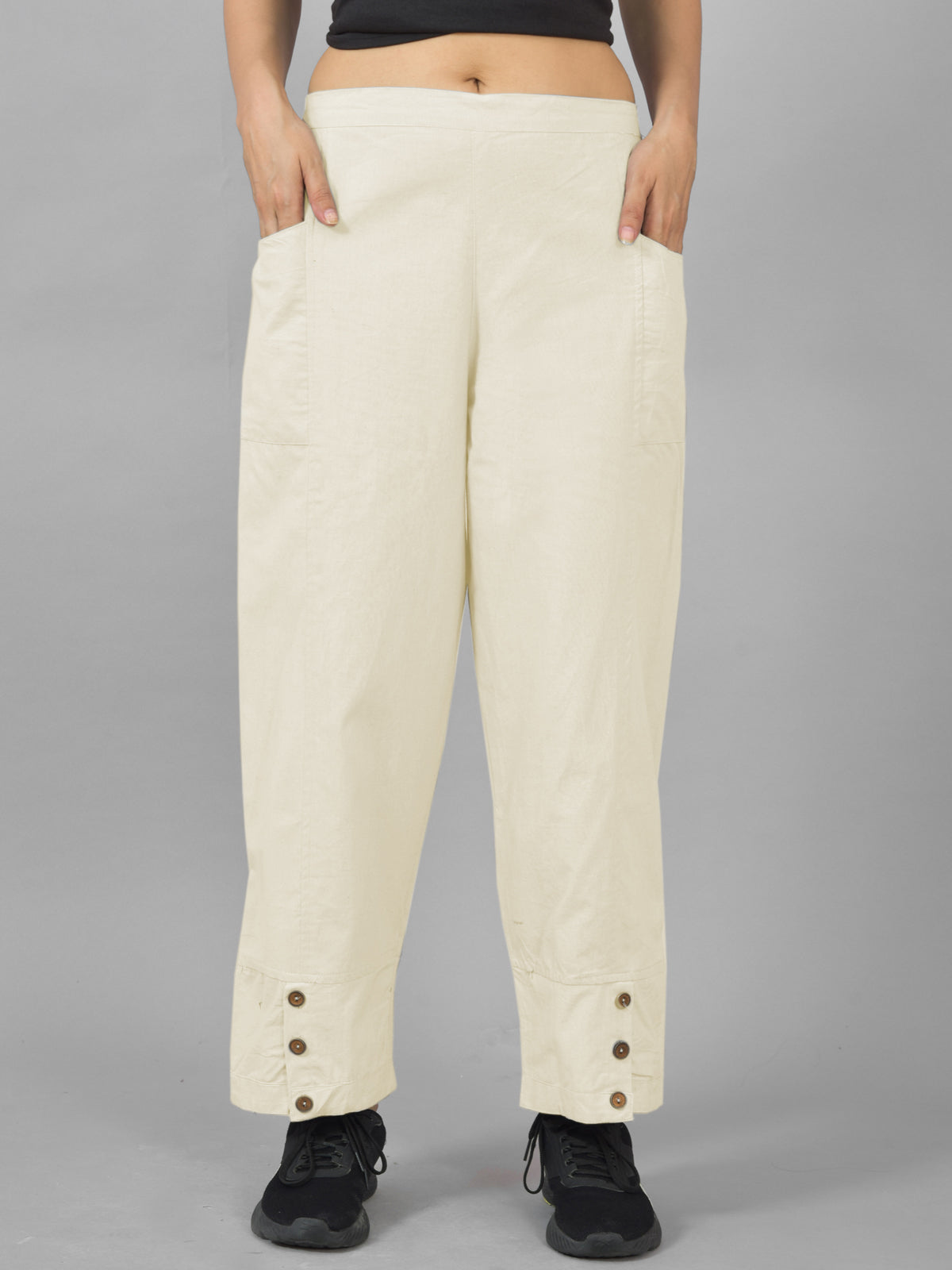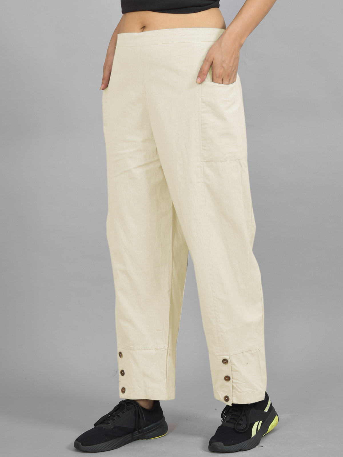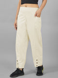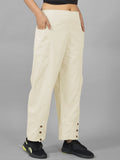 Womens Cream Side Pocket Pure Cotton Straight Cargo Pant