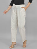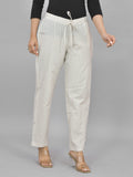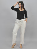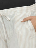 Womens Regular Fit Cream Striped South Cotton Trouser