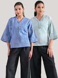 Pack Of 2 Denim Blue And Ice Blue Handloom Cotton Anchor Thread Designer Tops