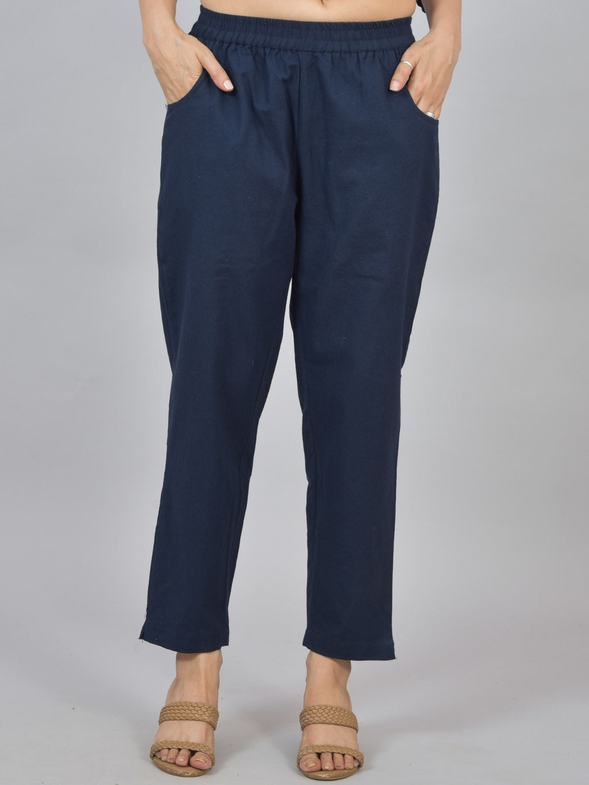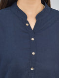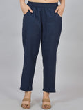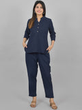 Womens Solid Dark Blue Cotton Top-Pyjama Co-Ords Set