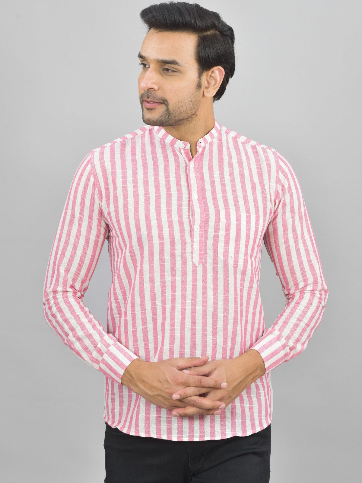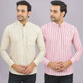 Pack Of 2 Mens Brown And Grey Stripe Linen Slub Short Kurta