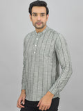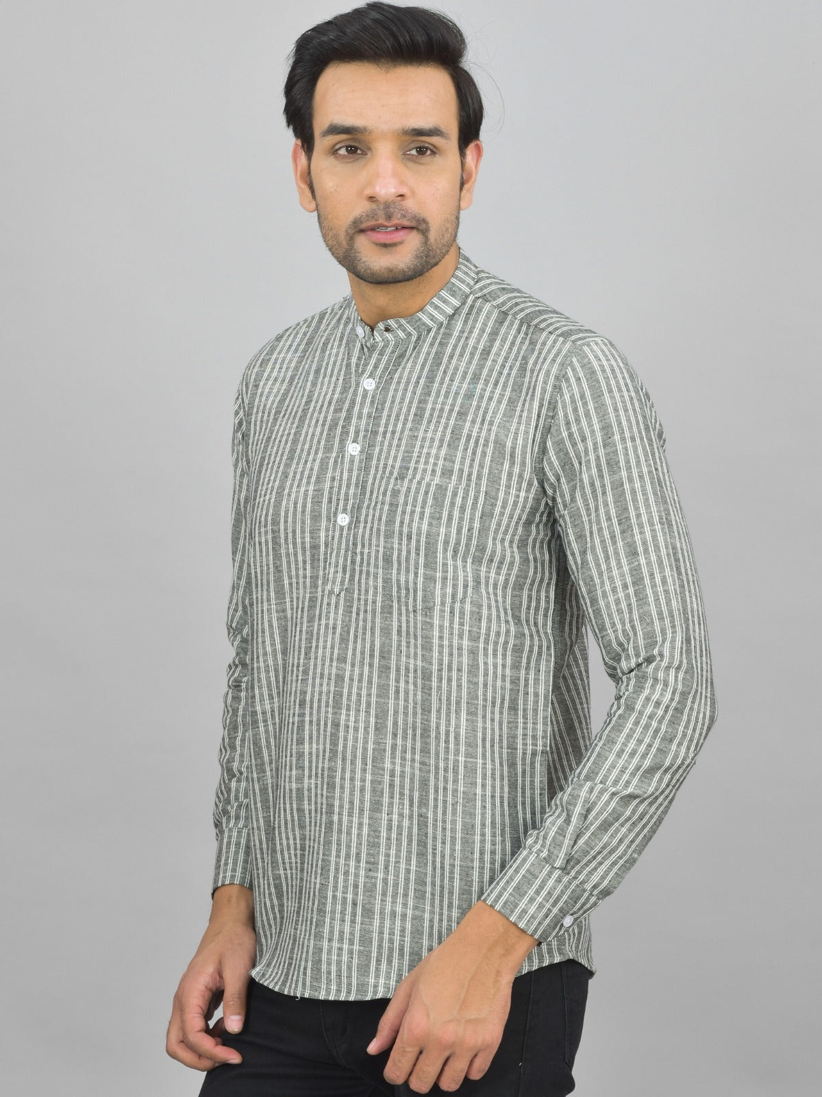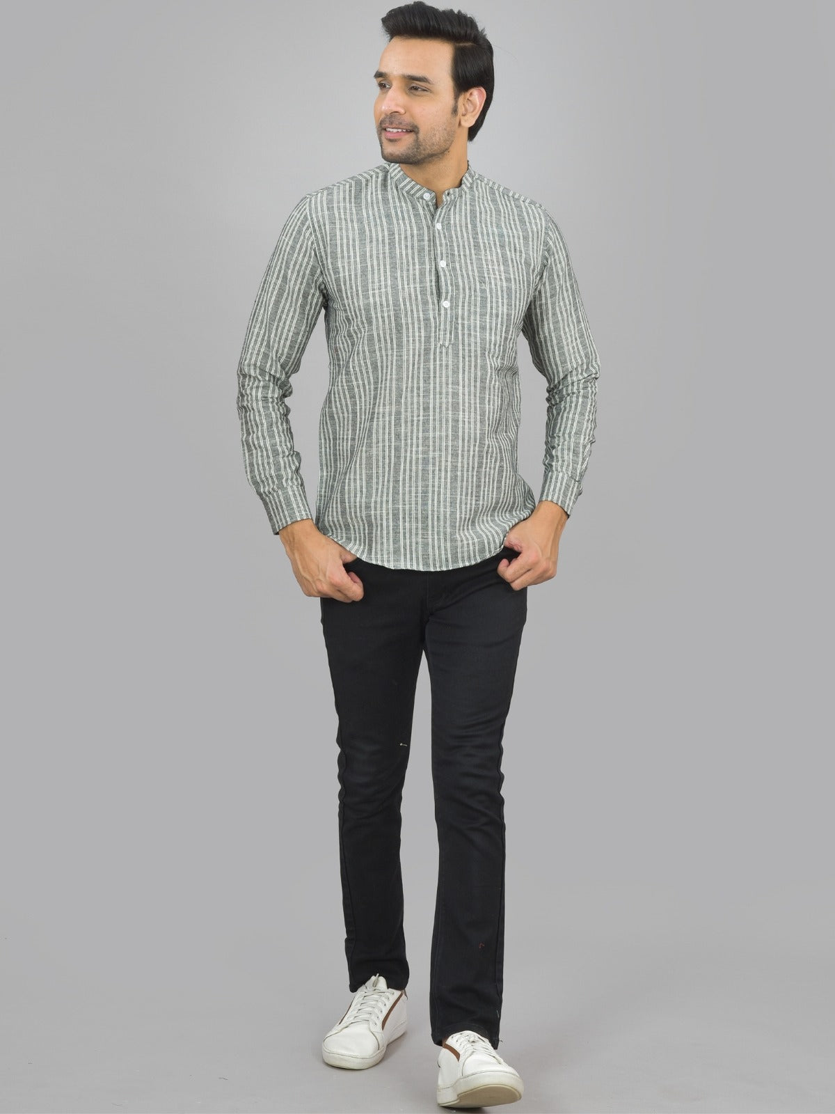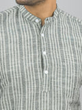 Regular Fit Grey Stripes Linen Slub Short Kurta
