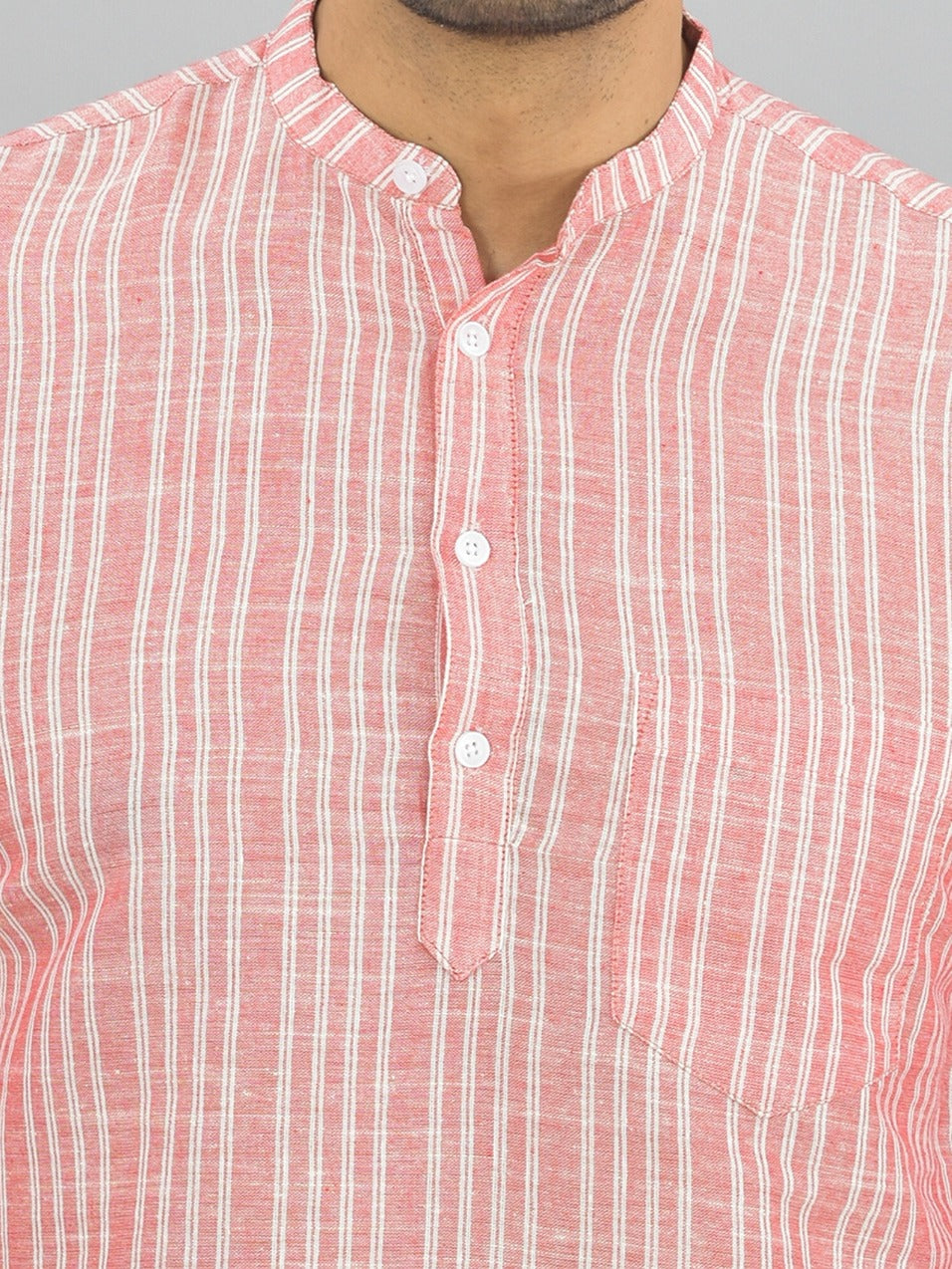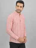 Regular Fit Red Stripes Linen Slub Short Kurta