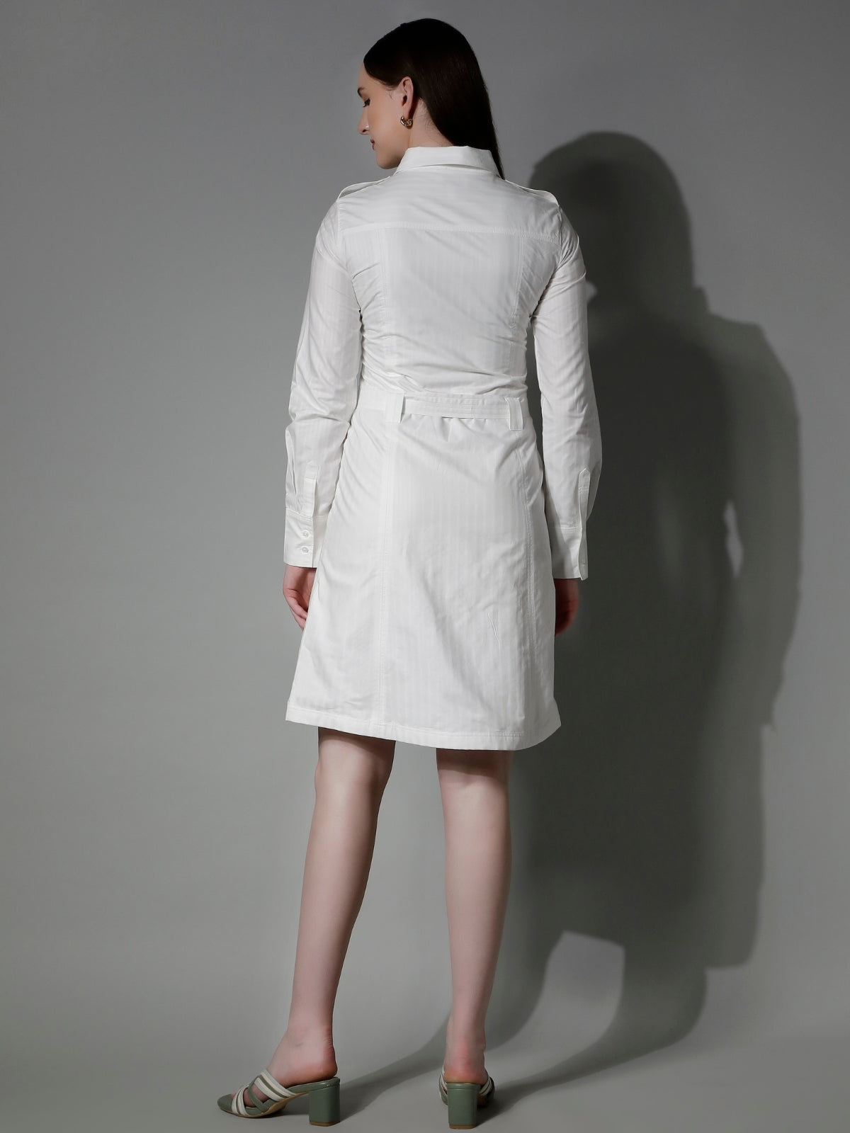 Defined by vertical all over stripes and a extra long full placket, our long length dress is epitome of elegance and lovely looks. AEGLE is made of sateen feel, textured fabric is made entirely of pure cotton. For your confidence and privacy, front part of dress has soft cotton lining.