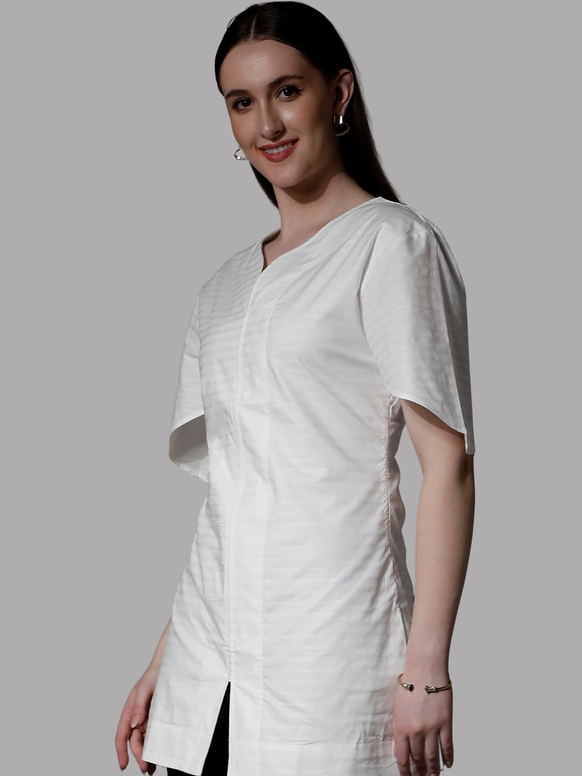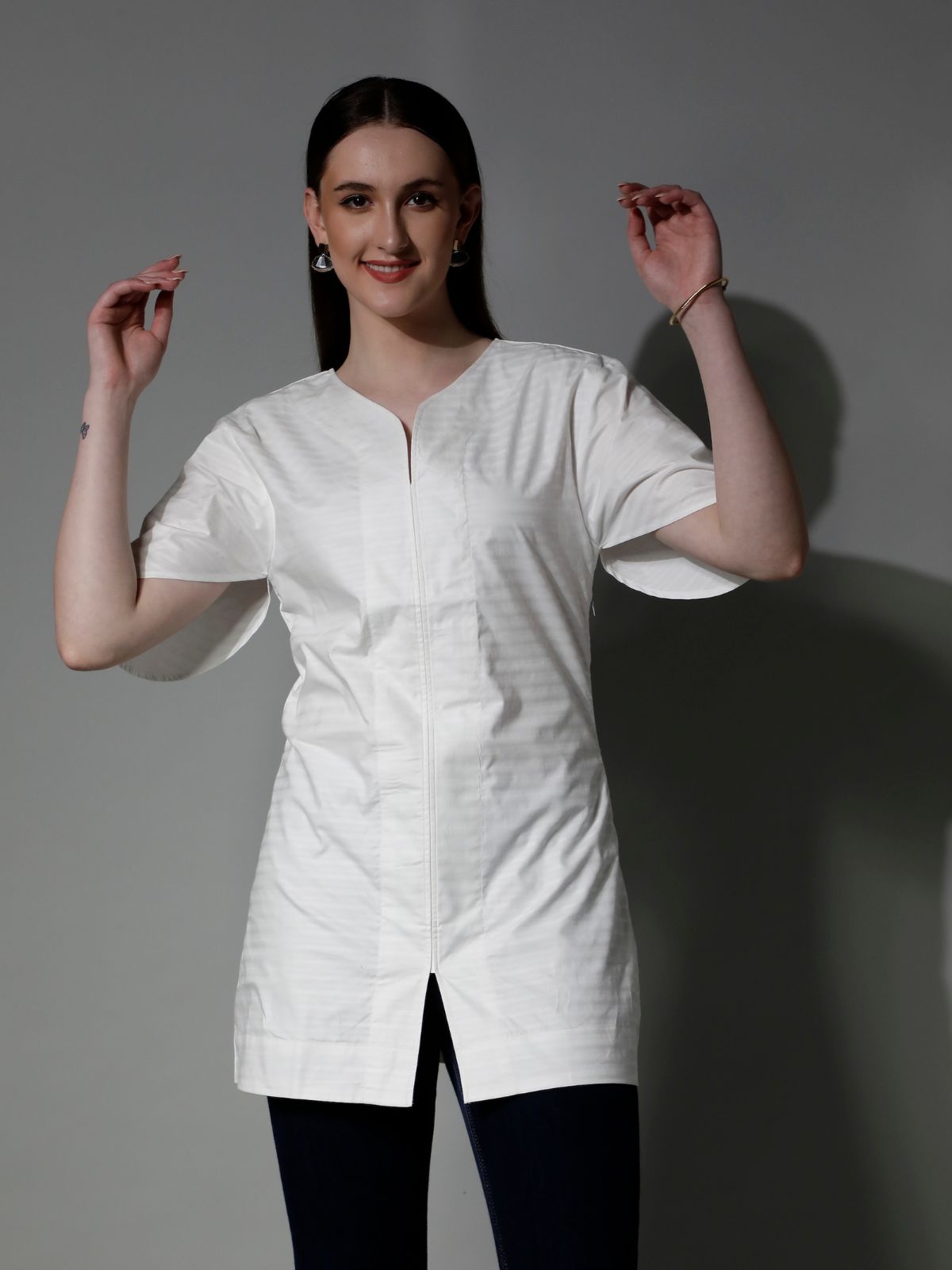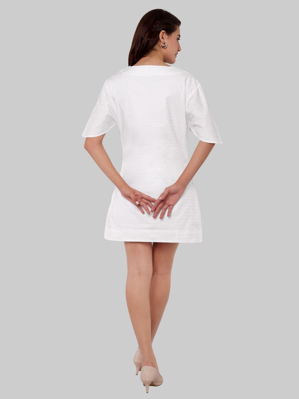 A powerful and adventurous looking NIAMH dress is made from soft satin finish, all over striped cotton fabric. NIAMH can be worn as a long top with tights or as a mini dress.