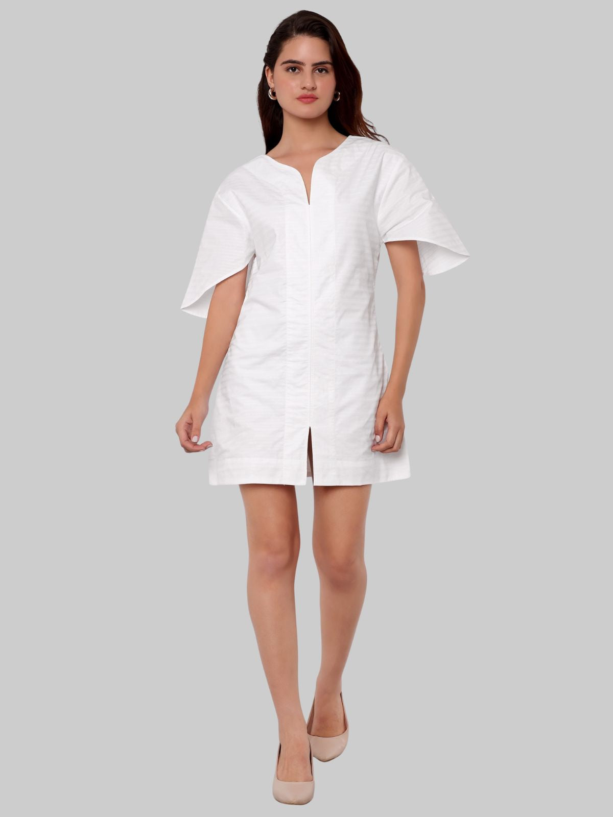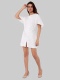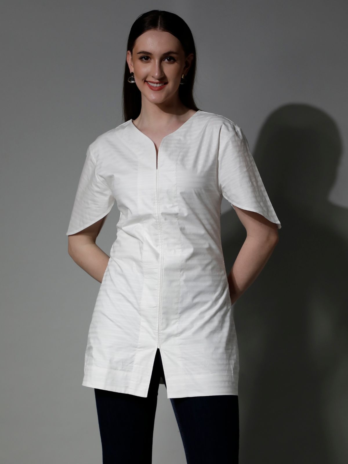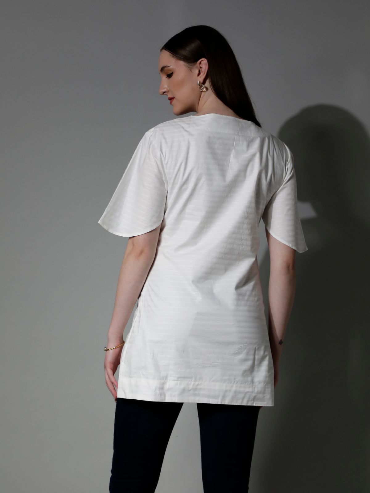 A powerful and adventurous looking NIAMH dress is made from soft satin finish, all over striped cotton fabric. NIAMH can be worn as a long top with tights or as a mini dress.