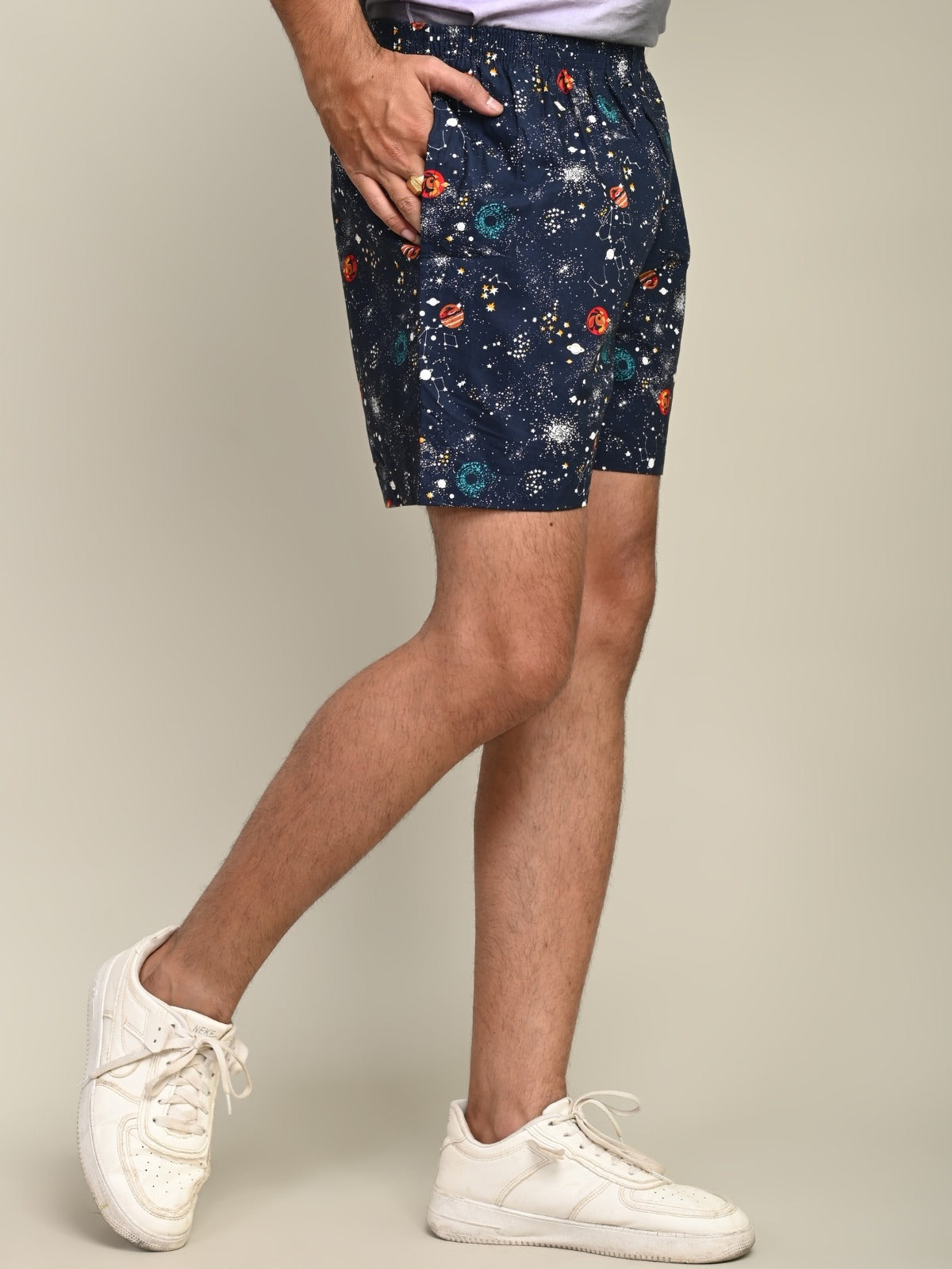 Men Dark Blue Regular Fit Printed Cotton Boxer