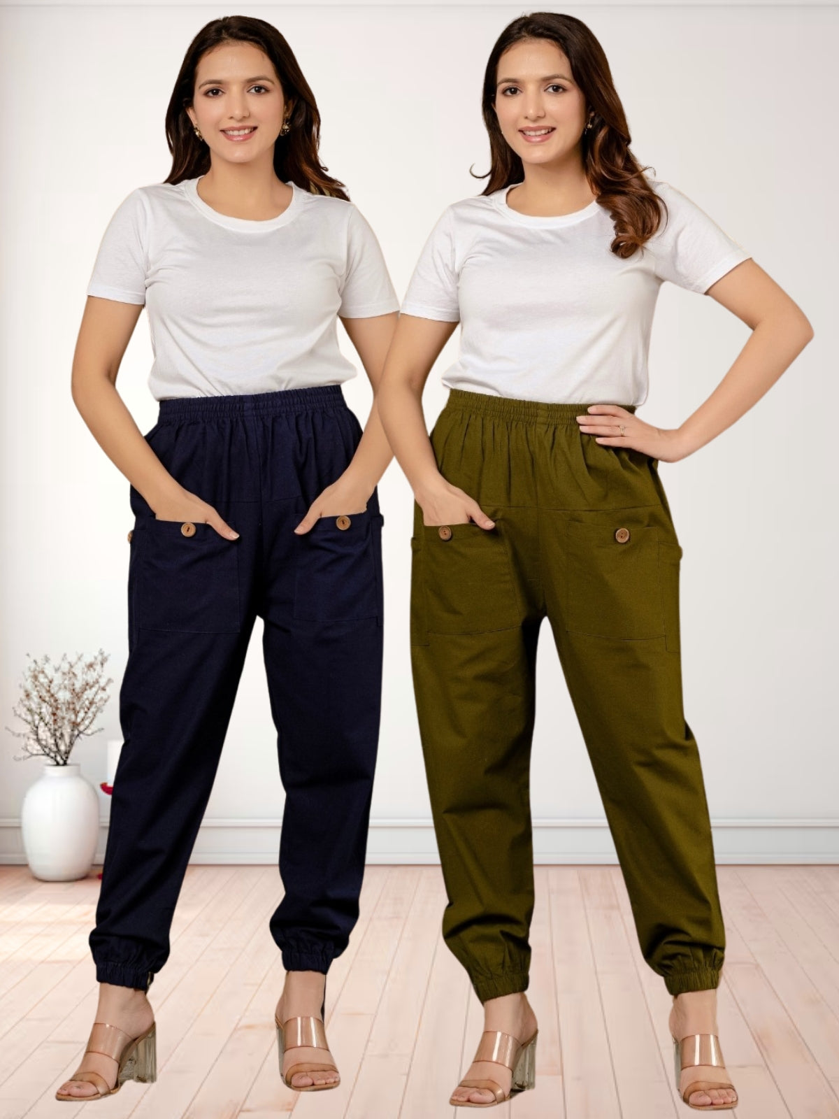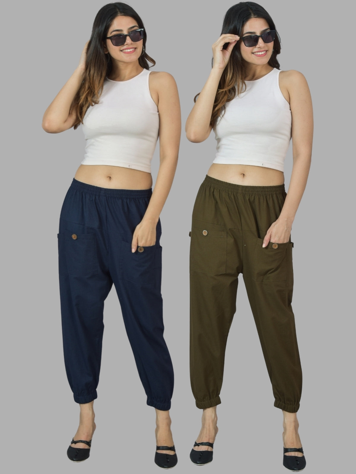 Combo Pack Of Womens Dark Blue And Dark Green Four Pocket Cotton Cargo Pants