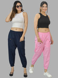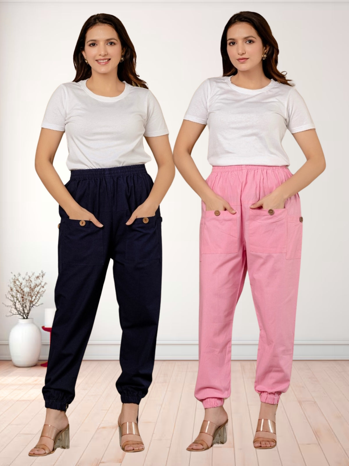 Combo Pack Of Womens Dark Blue And Pink Four Pocket Cotton Cargo Pants