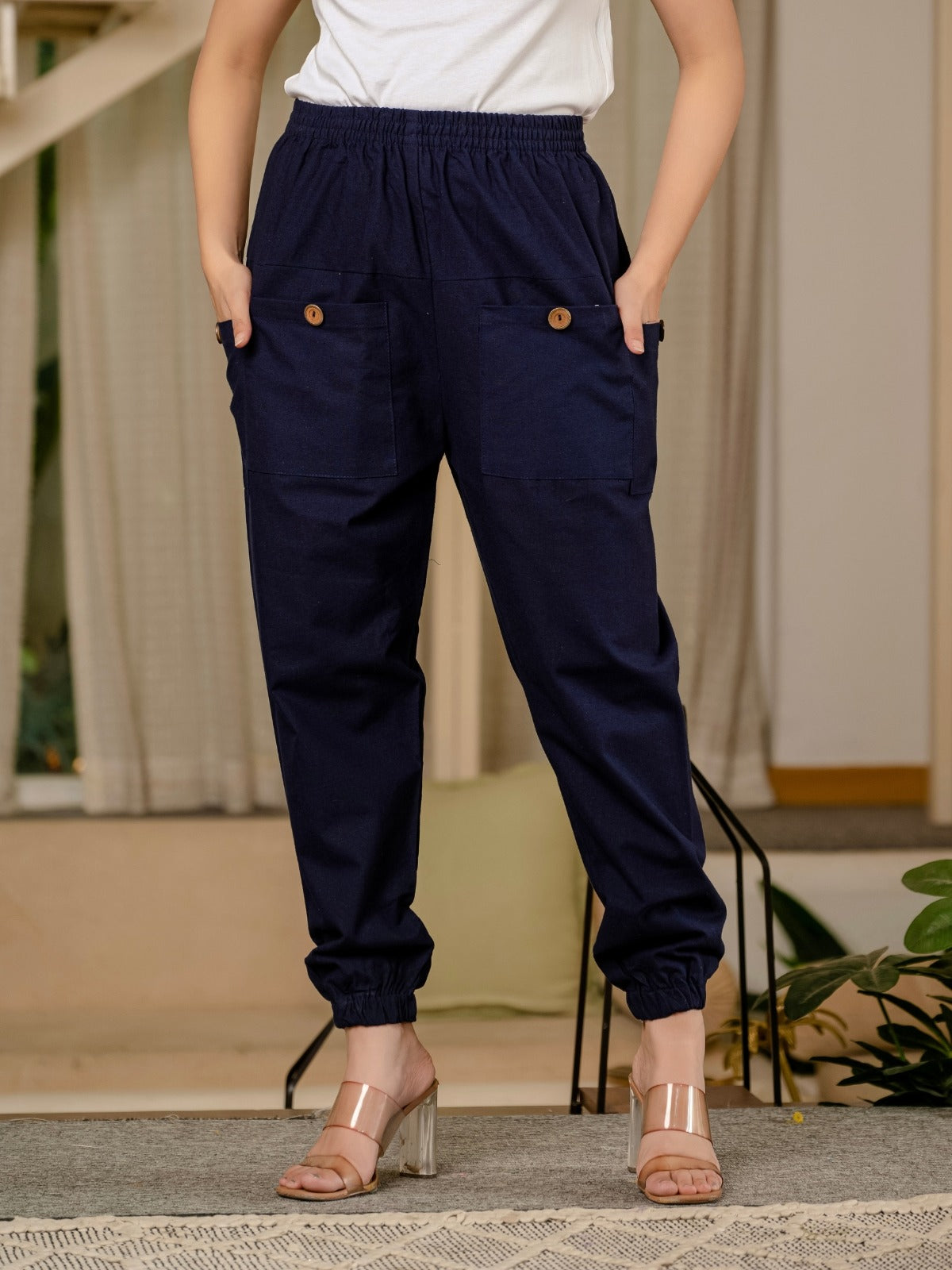Quaclo's Combo Pack Of Womens Four Pocket Cotton Cargo Pants will amaze you with its unmatched comfort and style. The softness and breathability of these flexible cargo pants are precisely constructed from the finest pure cotton. While the fully elastic waistband guarantees a perfect fit and extra flexibility, the ankle elastic provides a trendy touch and allows you to show off your preferred shoes. Whether you're relaxing at home, heading out or going on an adventure, these cargo pants are your go-to choice. The Pure Cotton Four Pocket Cargo Pants for Women by Quaclo are the perfect combination of fashion and function. Order this essential item right away as feasible to enhance your entire look.