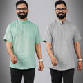 Pack Of 2 Mens Regular Fit Green And Grey Half Sleeve Cotton Short Kurta Combo