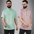Pack Of 2 Mens Regular Fit Green And Magenta Half Sleeve Cotton Short Kurta Combo