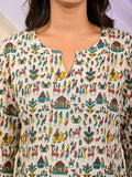 Womens Regular Fit Green Multi-Printed Short Kurti/Top