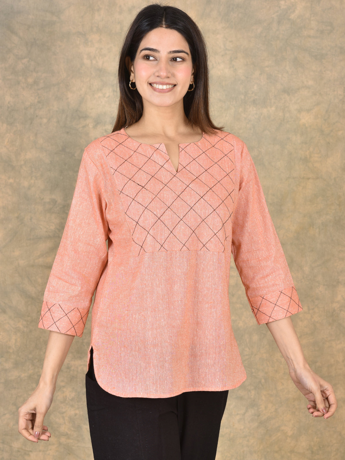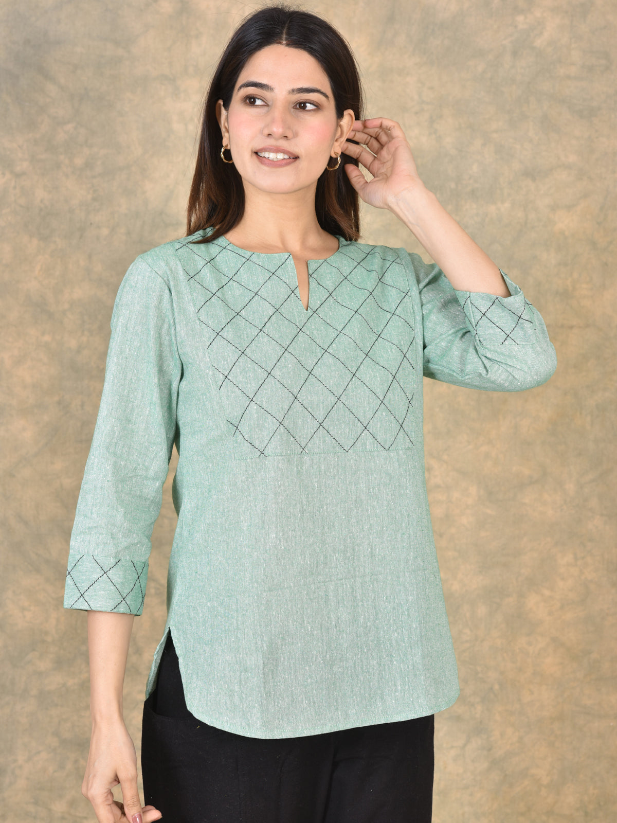 Quaclo Cotton Handloom Yoke Tops for women are designed with a regular fit and made from soft, breathable handloom cotton fabric for all-day comfort and a graceful look. The elegant yoke design adds a stylish and ethnic touch, making these tops perfect for daily wear, office, or casual outings. The solid color and simple pattern make it easy to pair with jeans, leggings, or trousers for a complete and trendy outfit. Shop from a wide range of Cotton Handloom Yoke Tops from Quaclo and upgrade your everyday wardrobe with comfort and style.