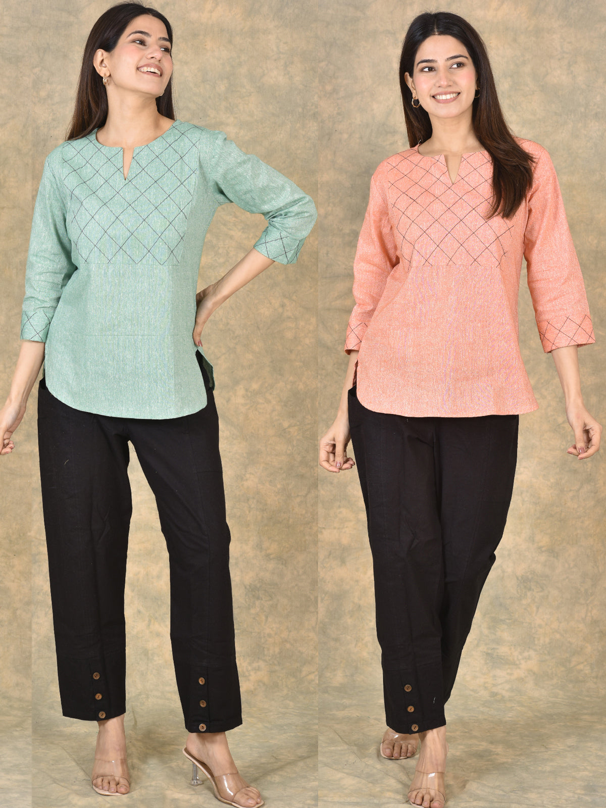 Handloom Cotton Yoke Top Combo Pack of 2 – Green & Orange