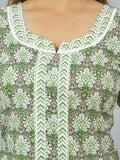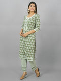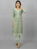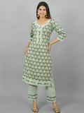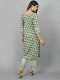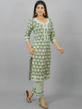 Womens Green Flower Printed Round Neck Kurta and Pant Set