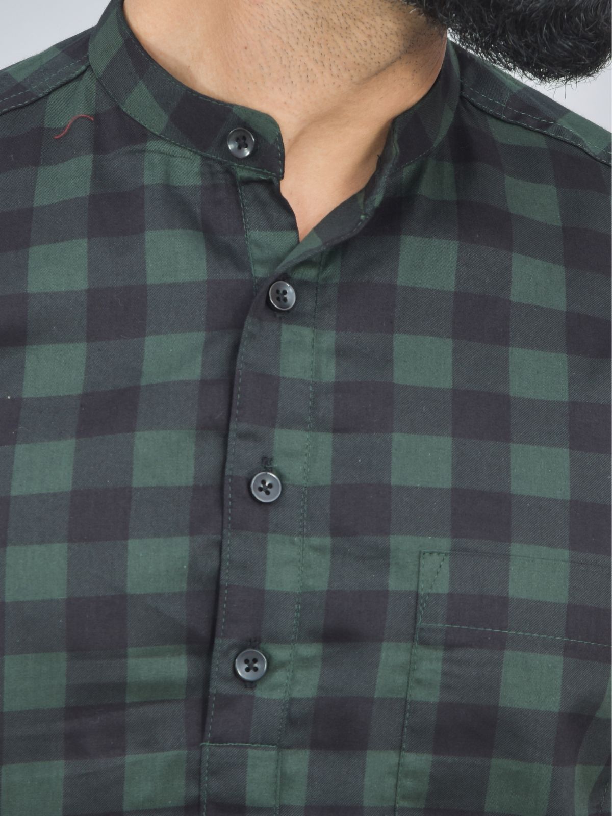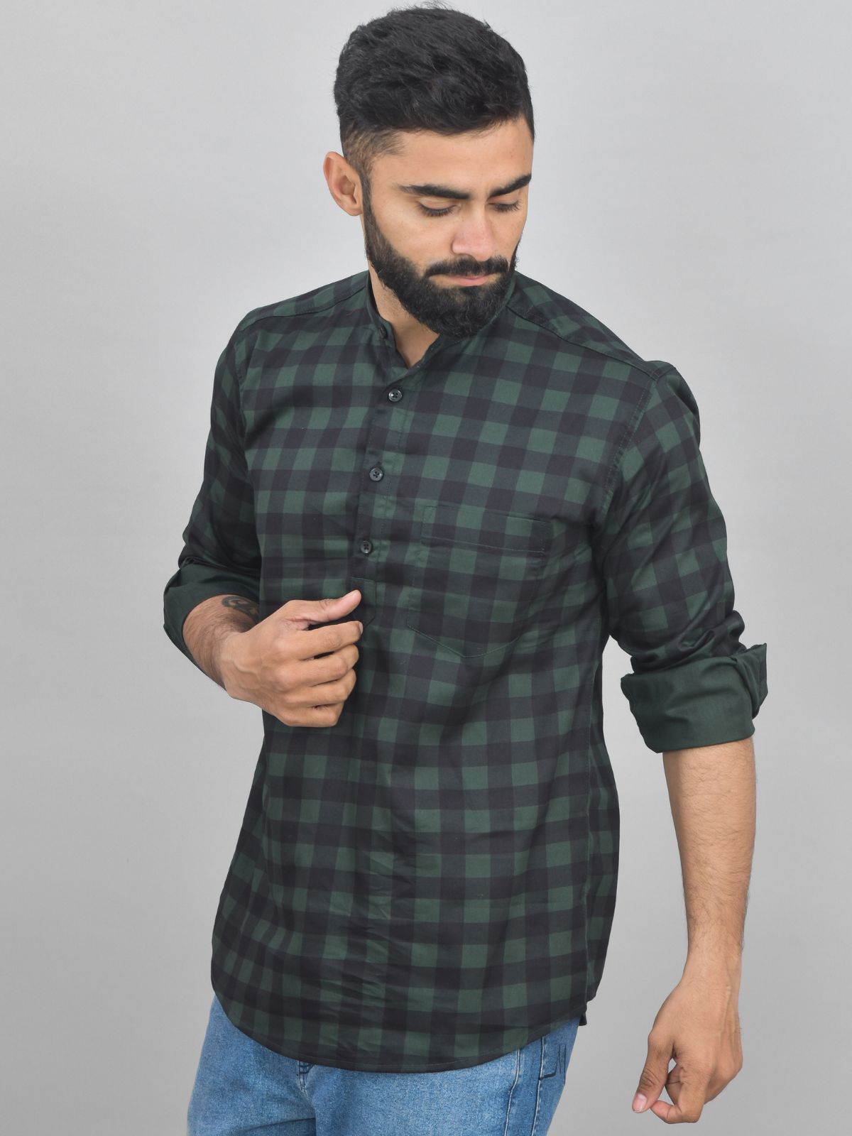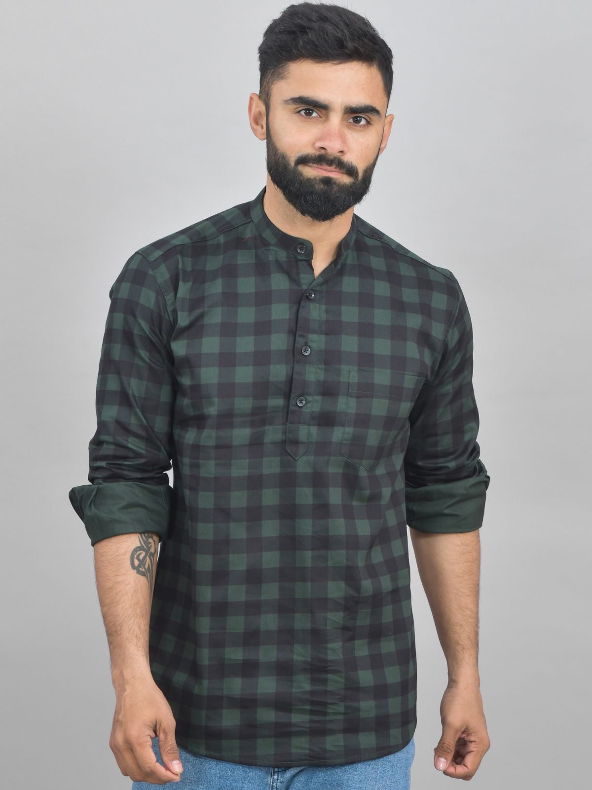 Explore classic fashion with our newest Mens Full Sleeve Short Kurta. This beautifully made kurta with small checks will elevate your wardrobe. The mandarin collar gives an updated touch that strikes the ideal blend between personalised and modern style. This carefully crafted cotton kurta guarantees breathability all day long. In addition to improving functionality, the well-considered addition of a chest pocket gives the entire design a fashionable touch. Enjoy this kurta's versatility as it can be worn to semi-formal and casual events. It becomes a focal point in your collection with the slight flair added by the curved hem. With this essential wardrobe piece, you can up your style bar. Shop now to reinvent your look with our Kurtas, which seamlessly combine style with ease.