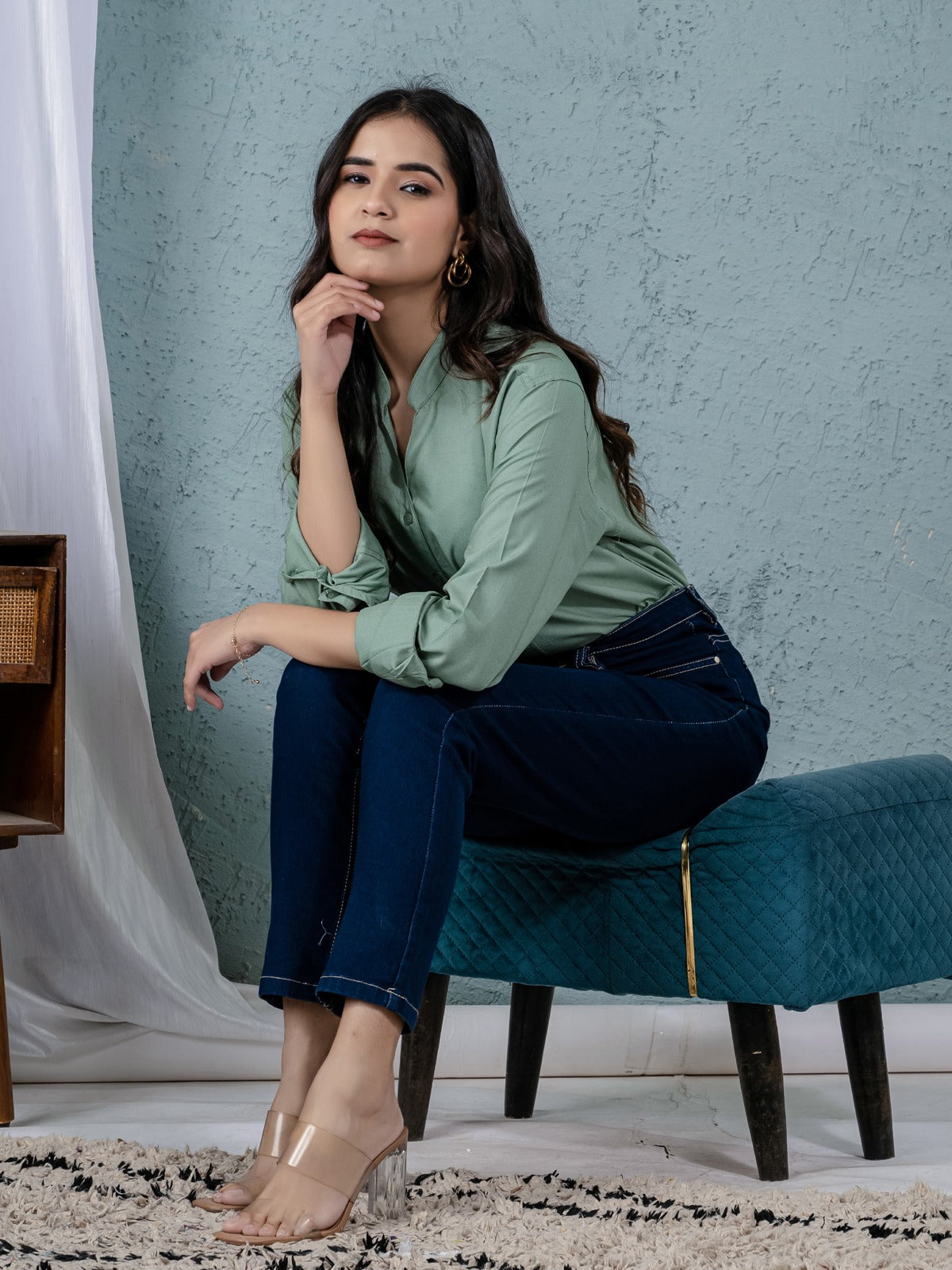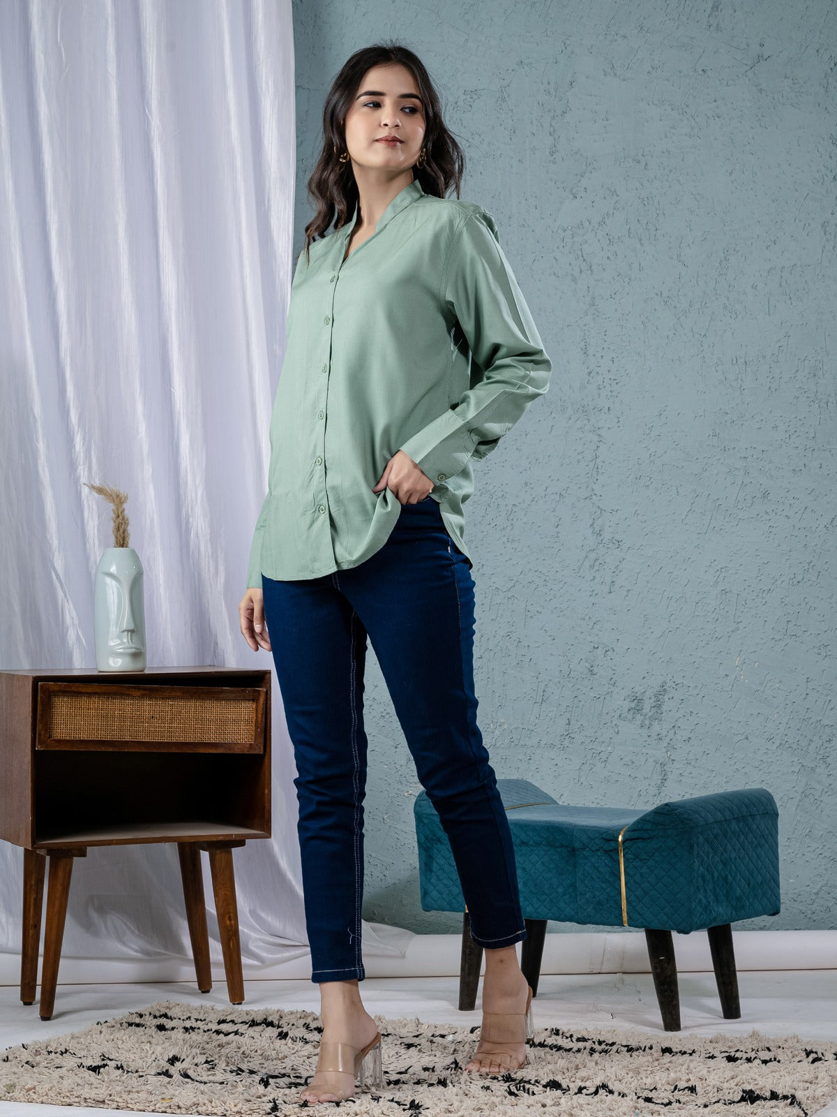 Women Solid Green Viscose Shirt