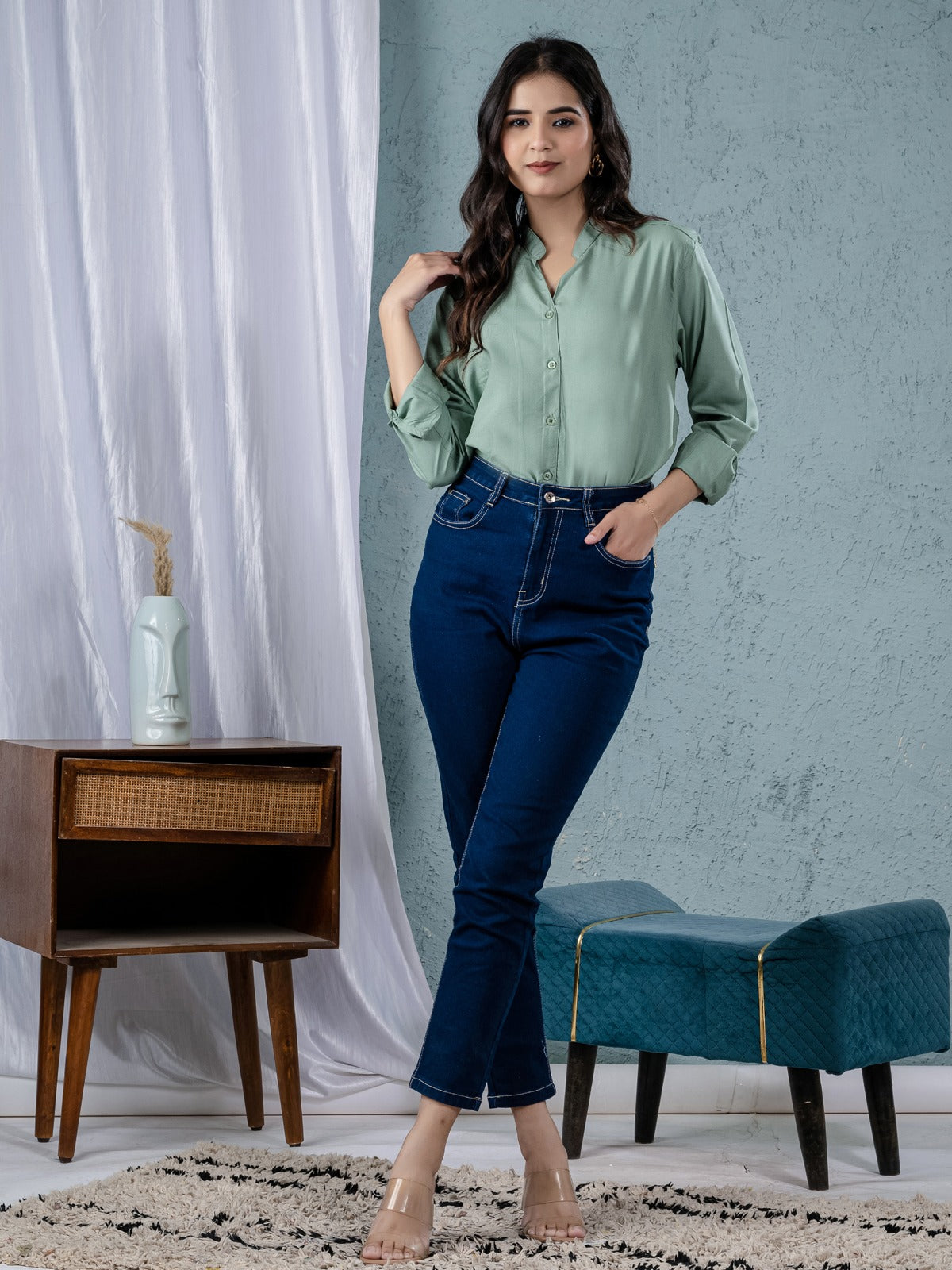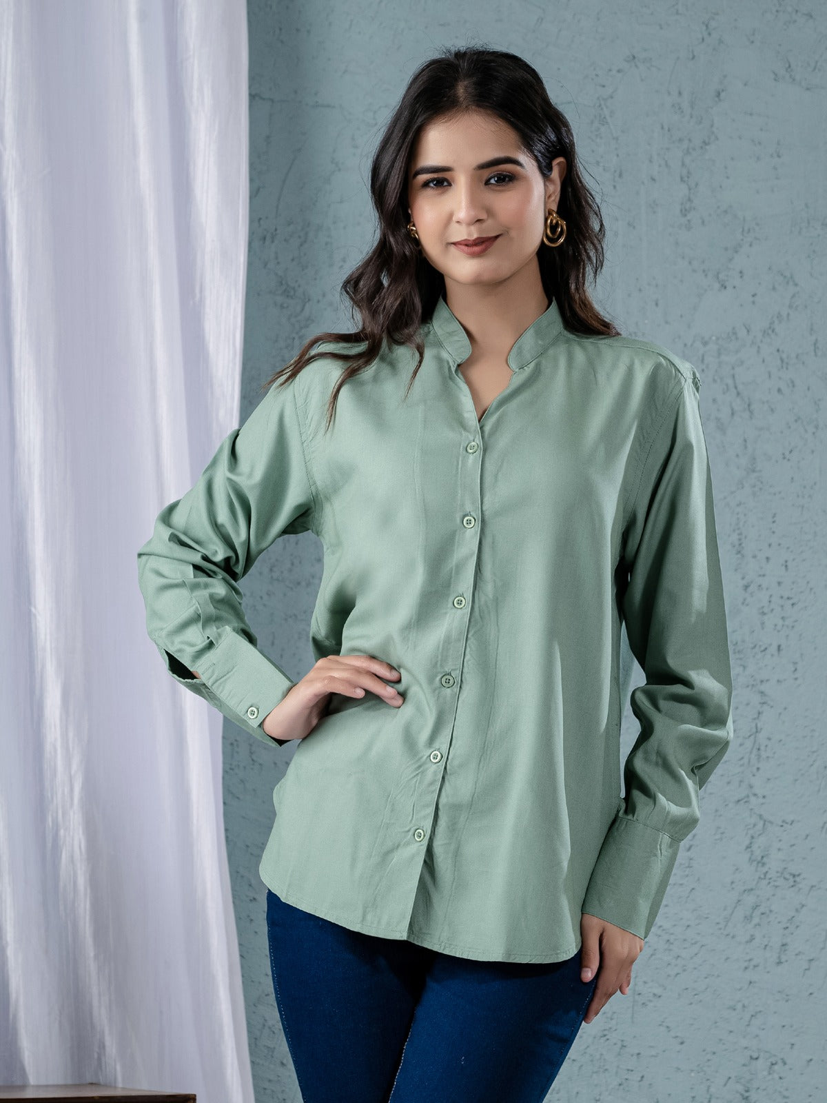 Are you trying to find a comfortable and fashionable women's shirt? For any occasion, our solid viscose rayon shirts are ideal! This shirt's full sleeves, V-shaped Mandarin collar neck, and hip-length cut give it a stylish and contemporary appearance. The soft viscose fabric offers breathability and comfort all day long, and the button closure guarantees a snug and well-fitting fit. This flexible item goes well with jeans, pants, or skirts and is perfect for evening events, office wear, and casual outings. This classic and sophisticated shirt, which comes in a variety of colors, will add flair to your outfit. Get a stylish and cozy fashion upgrade right now. Ideal for every season!