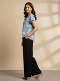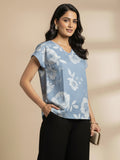 Grey Flower Airy Linen Cotton Printed Short Kurti/Top