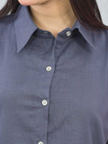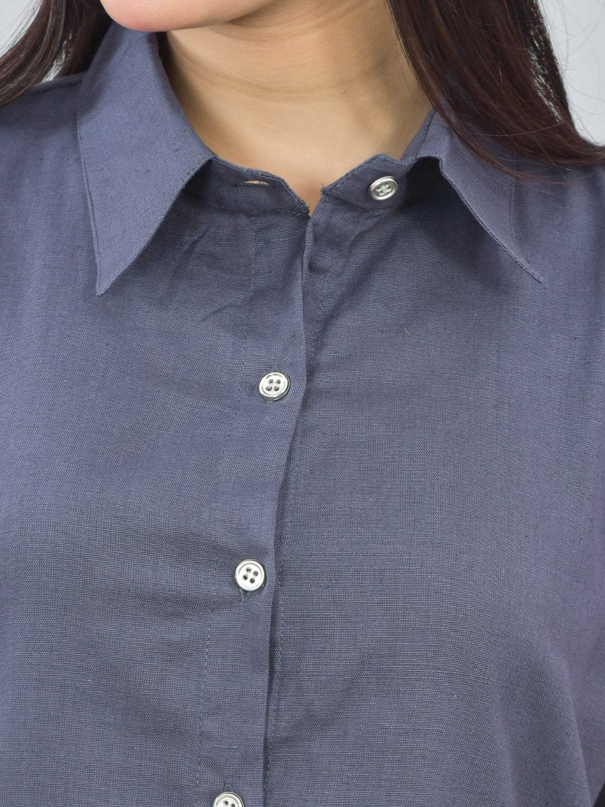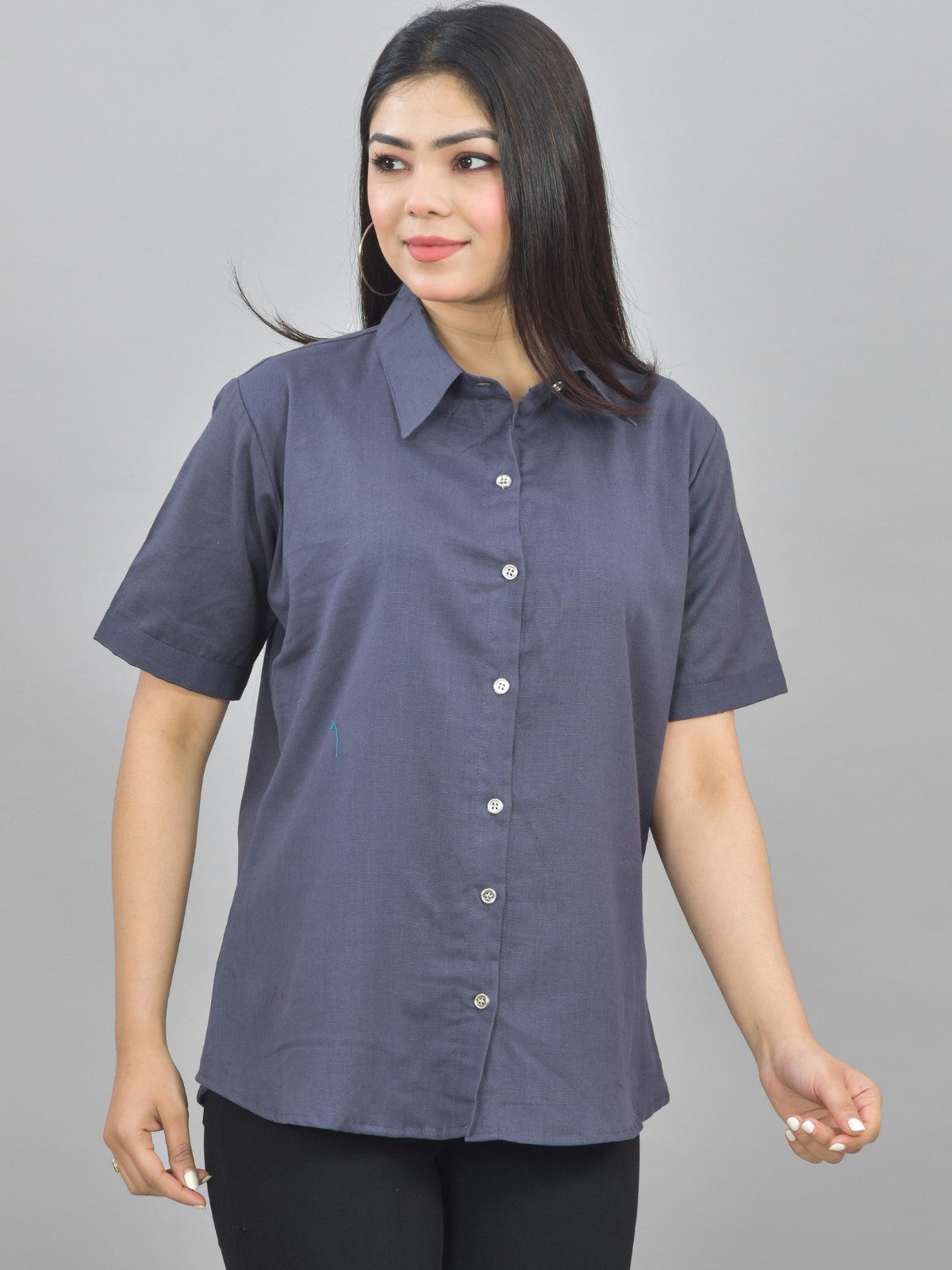 Women Solid Grey Half Sleeve Spread Collar Cotton Shirt