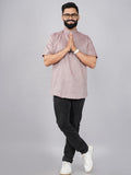 Pack Of 2 Mens Regular Fit Grey And Magenta Half Sleeve Cotton Short Kurta Combo
