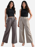 Pack Of 2 Grey And Melange Grey Women Cotton Wide Leg Pants