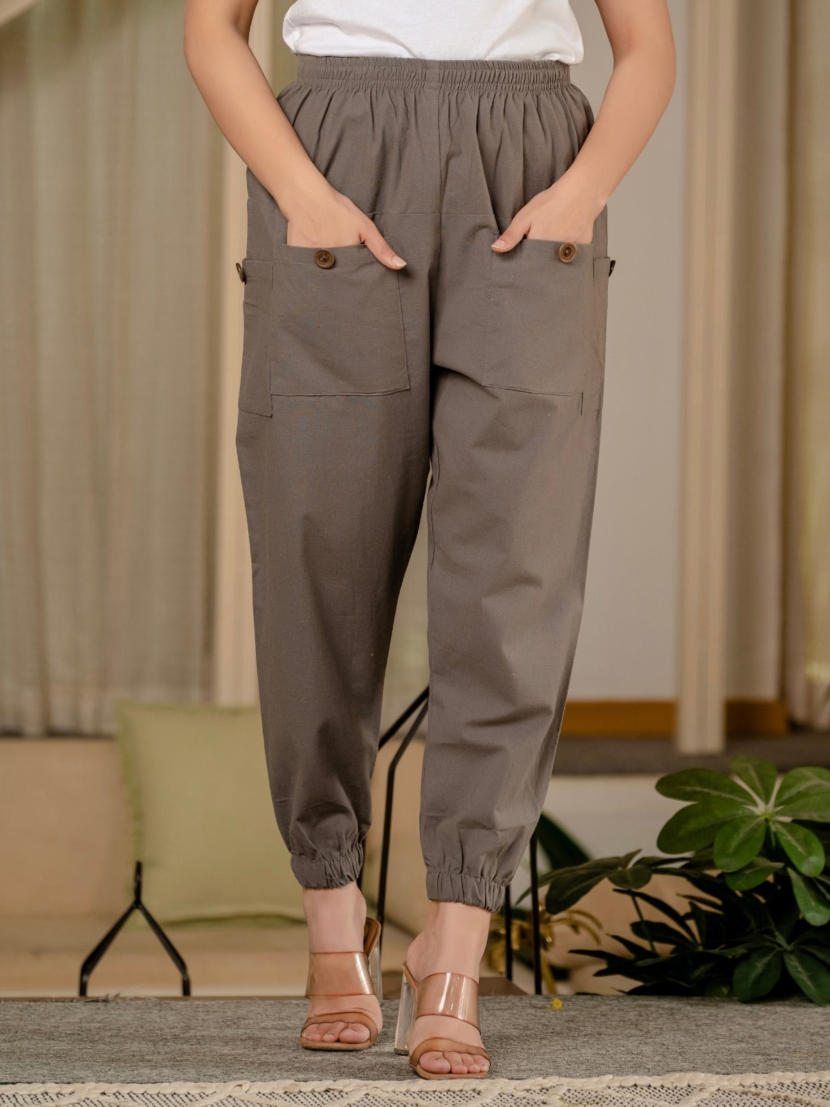 Quaclo's Combo Pack Of Womens Four Pocket Cotton Cargo Pants will amaze you with its unmatched comfort and style. The softness and breathability of these flexible cargo pants are precisely constructed from the finest pure cotton. While the fully elastic waistband guarantees a perfect fit and extra flexibility, the ankle elastic provides a trendy touch and allows you to show off your preferred shoes. Whether you're relaxing at home, heading out or going on an adventure, these cargo pants are your go-to choice. The Pure Cotton Four Pocket Cargo Pants for Women by Quaclo are the perfect combination of fashion and function. Order this essential item right away as feasible to enhance your entire look.