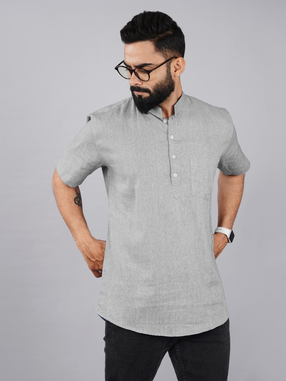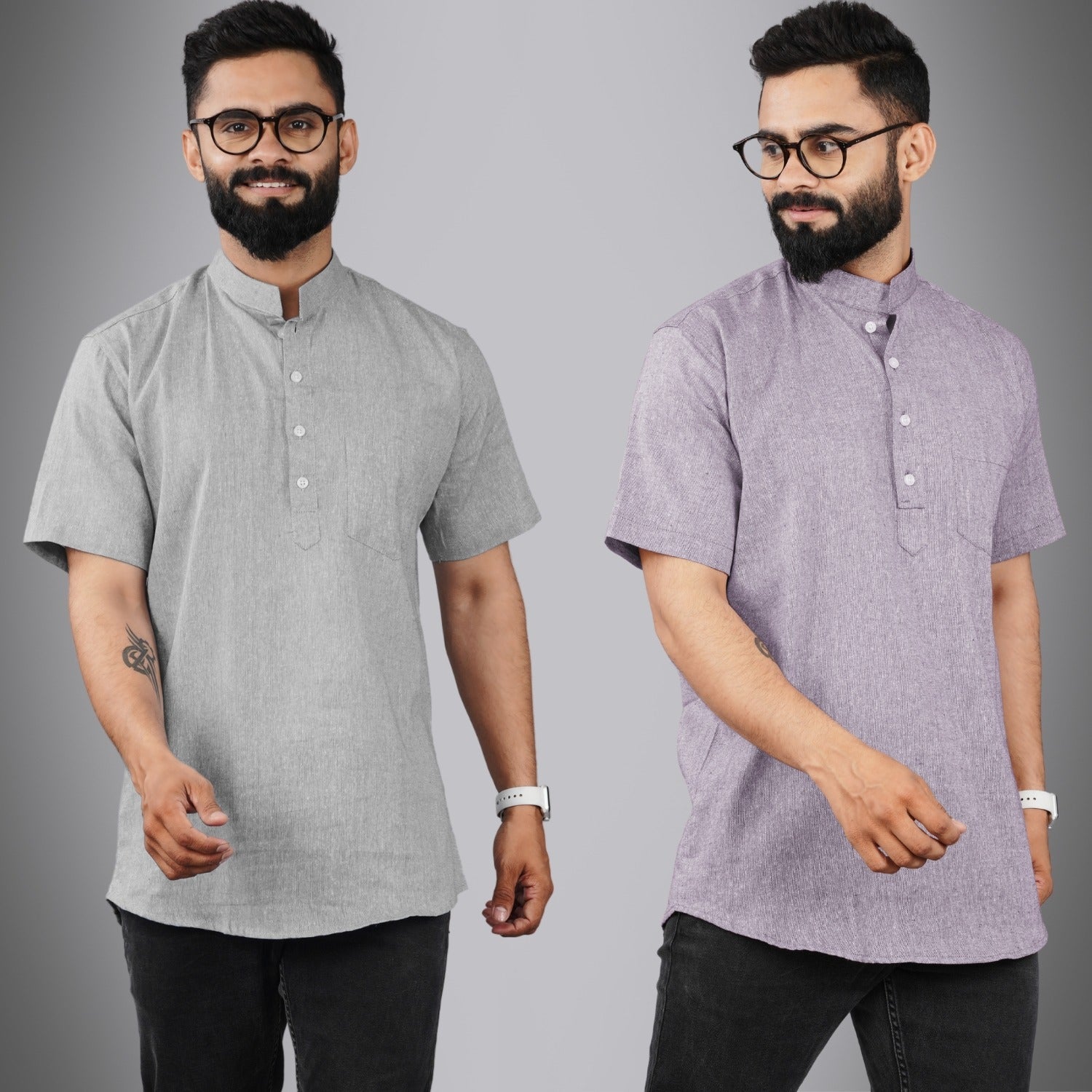 Pack Of 2 Mens Regular Fit Grey And Purple Half Sleeve Cotton Short Kurta Combo