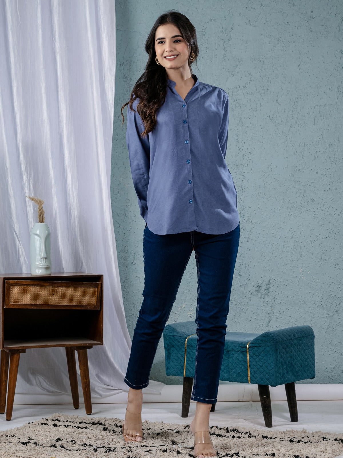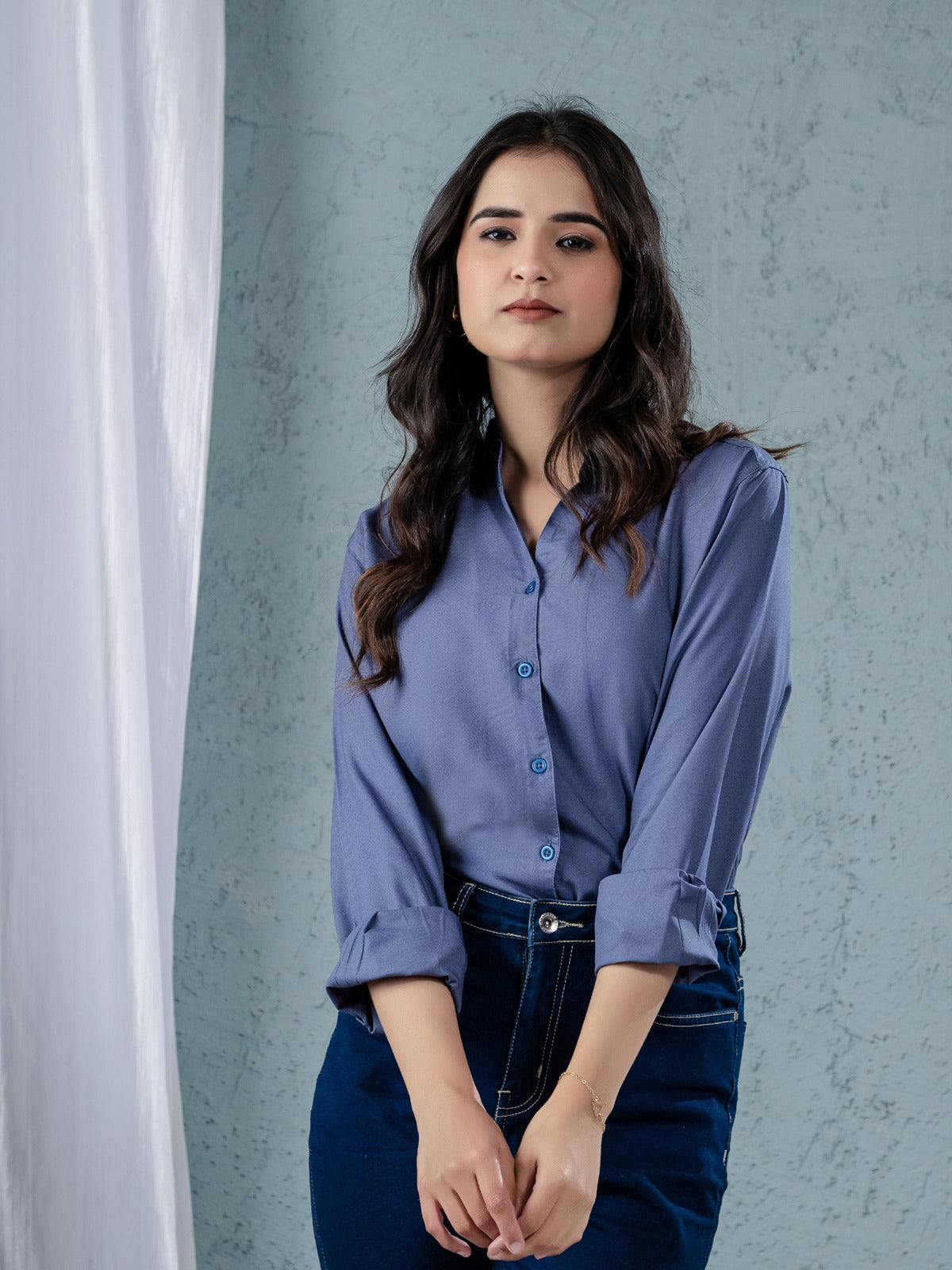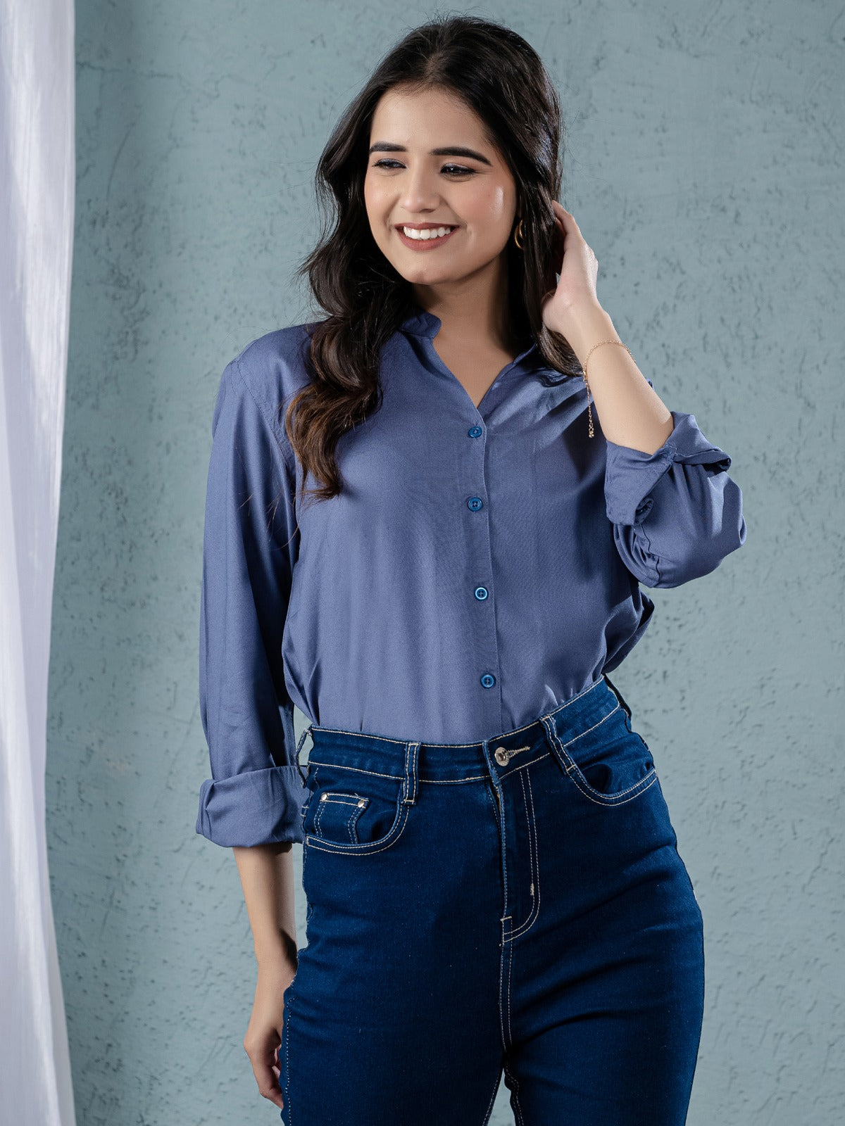 Are you trying to find a comfortable and fashionable women's shirt? For any occasion, our solid viscose rayon shirts are ideal! This shirt's full sleeves, V-shaped Mandarin collar neck, and hip-length cut give it a stylish and contemporary appearance. The soft viscose fabric offers breathability and comfort all day long, and the button closure guarantees a snug and well-fitting fit. This flexible item goes well with jeans, pants, or skirts and is perfect for evening events, office wear, and casual outings. This classic and sophisticated shirt, which comes in a variety of colors, will add flair to your outfit. Get a stylish and cozy fashion upgrade right now. Ideal for every season!