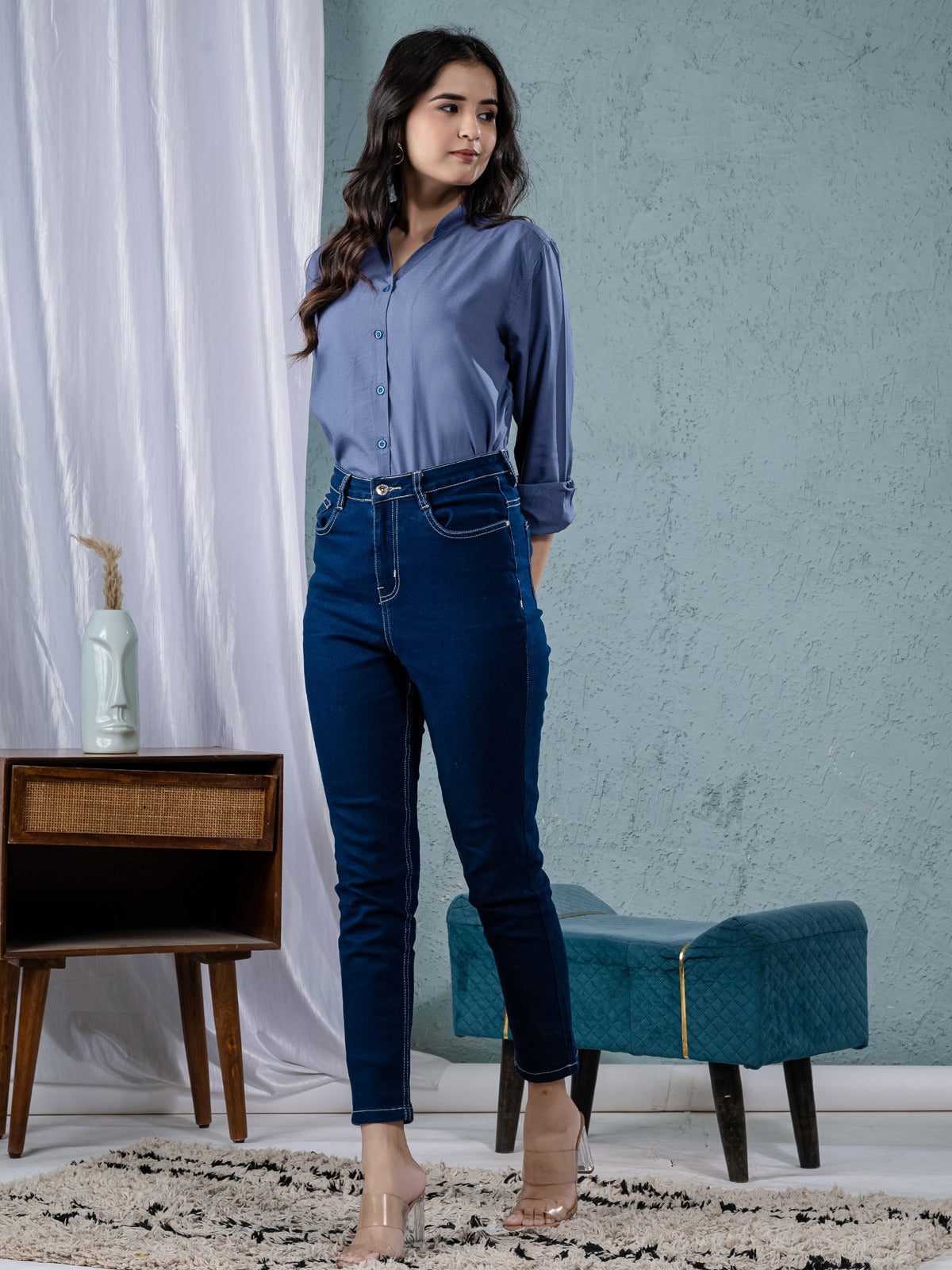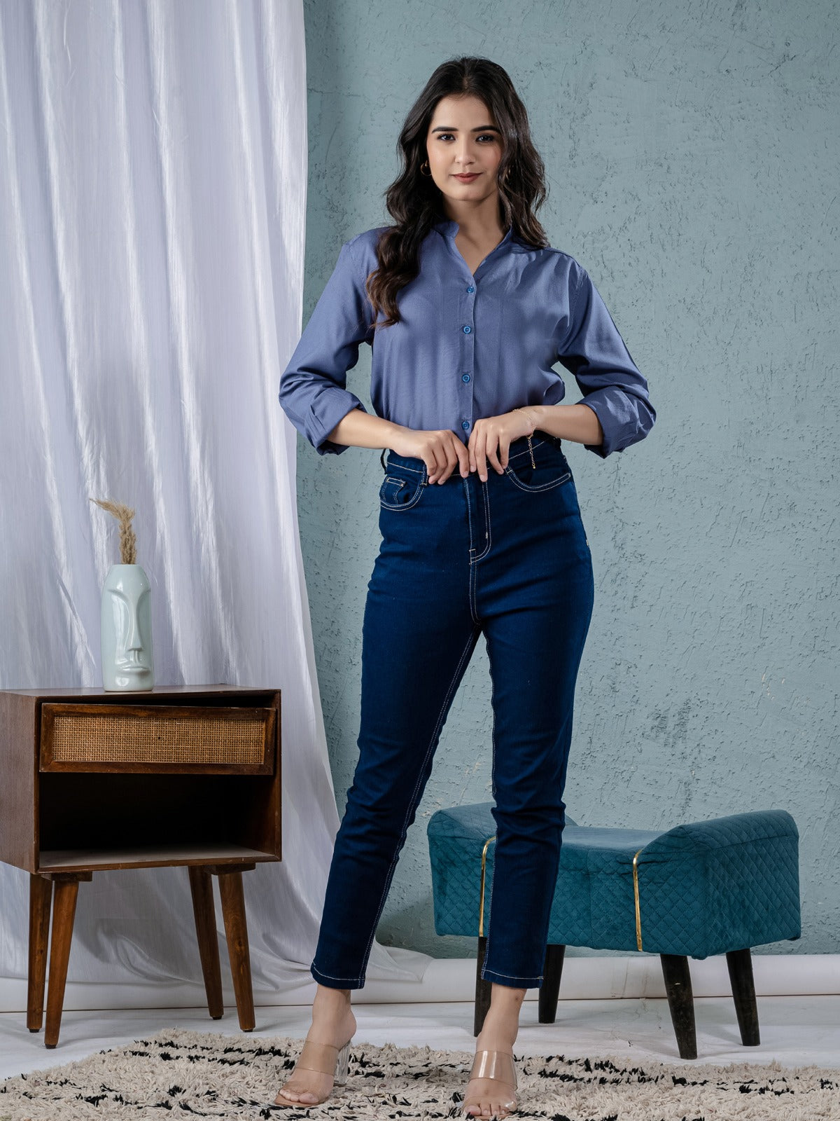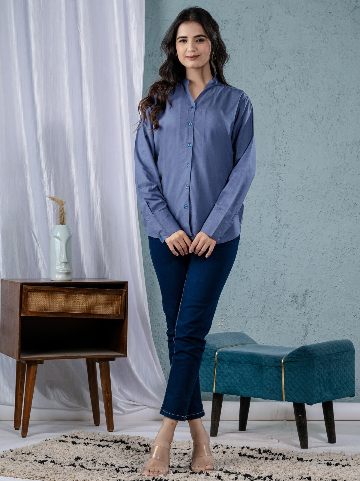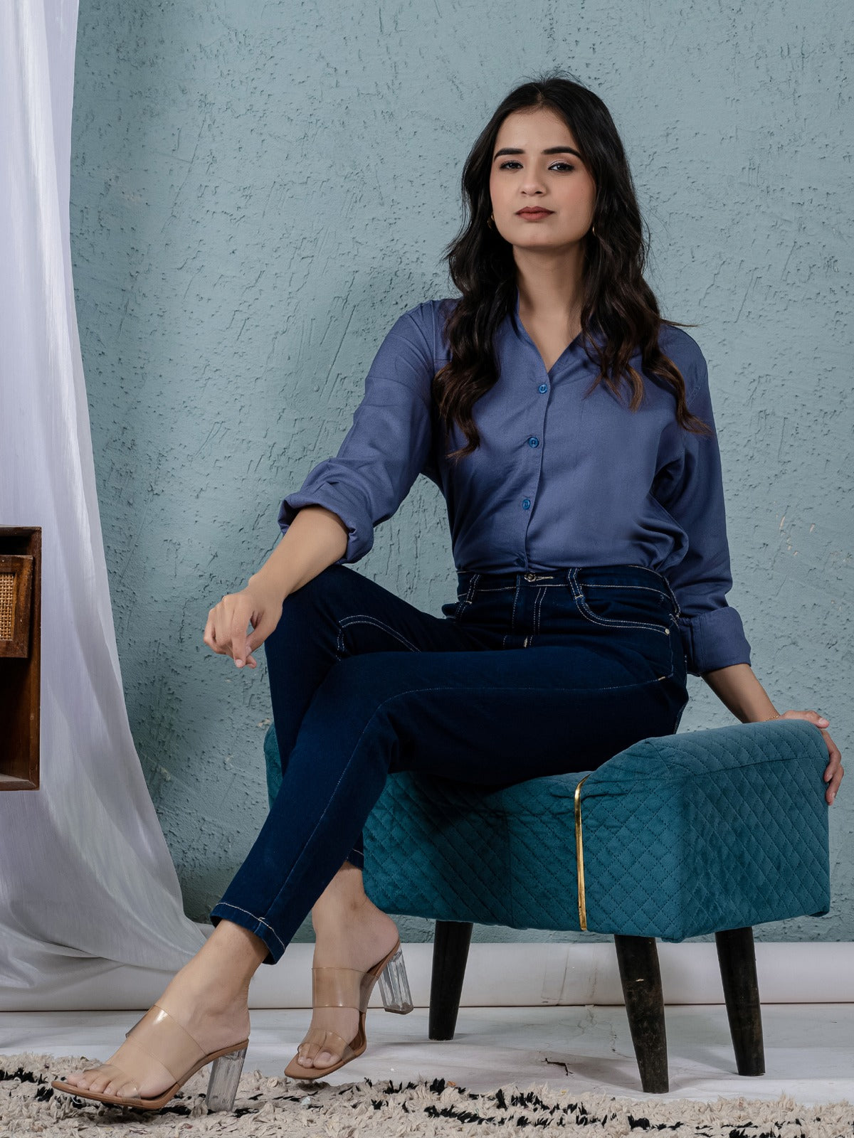 Are you trying to find a comfortable and fashionable women's shirt? For any occasion, our solid viscose rayon shirts are ideal! This shirt's full sleeves, V-shaped Mandarin collar neck, and hip-length cut give it a stylish and contemporary appearance. The soft viscose fabric offers breathability and comfort all day long, and the button closure guarantees a snug and well-fitting fit. This flexible item goes well with jeans, pants, or skirts and is perfect for evening events, office wear, and casual outings. This classic and sophisticated shirt, which comes in a variety of colors, will add flair to your outfit. Get a stylish and cozy fashion upgrade right now. Ideal for every season!
