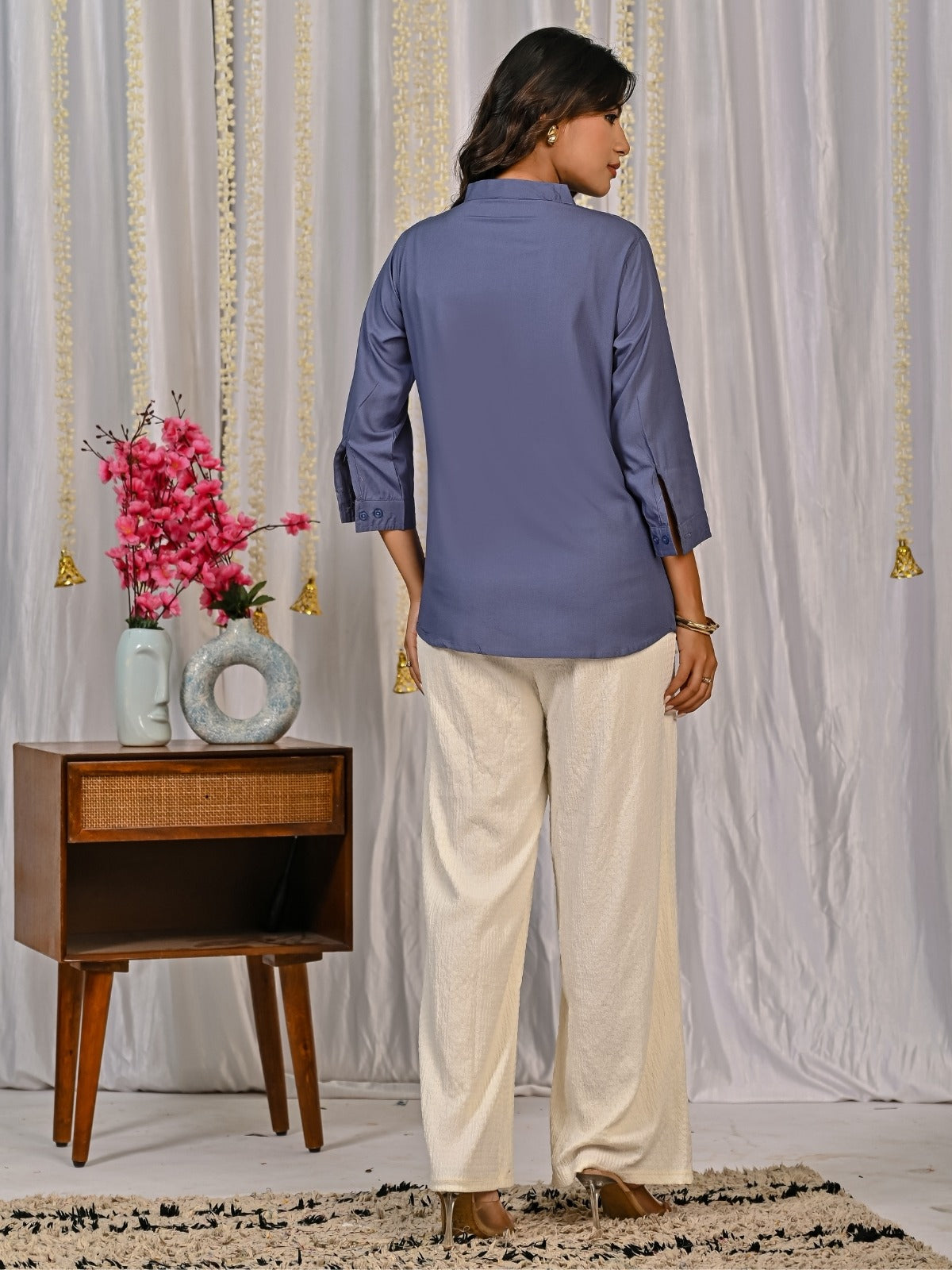 Discover our Solid Viscose V-Neck Collar Pleated Top for Women, designed to blend comfort with timeless style. Crafted from premium viscose fabric, this chic top features a flattering V-neck with a mandarin collar, elegant pleated detailing, and versatile 3/4th sleeves for a modern touch. Available in sizes S to 2XL and a wide range of 10 vibrant colors, it ensures the perfect fit for every woman. Ideal for both casual outings and office wear, this stylish top can be effortlessly paired with jeans, trousers, or skirts for a polished look. Soft, breathable, and easy to style, it’s a wardrobe .