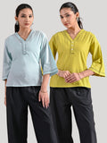 Pack Of 2 Ice Blue And Parrot Green Handloom Cotton Anchor Thread Designer Tops