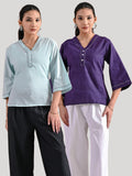 Pack Of 2 Ice Blue And Purple Handloom Cotton Anchor Thread Designer Tops