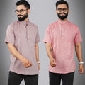 Pack Of 2 Mens Regular Fit Magenta And Red Half Sleeve Cotton Short Kurta Combo