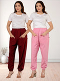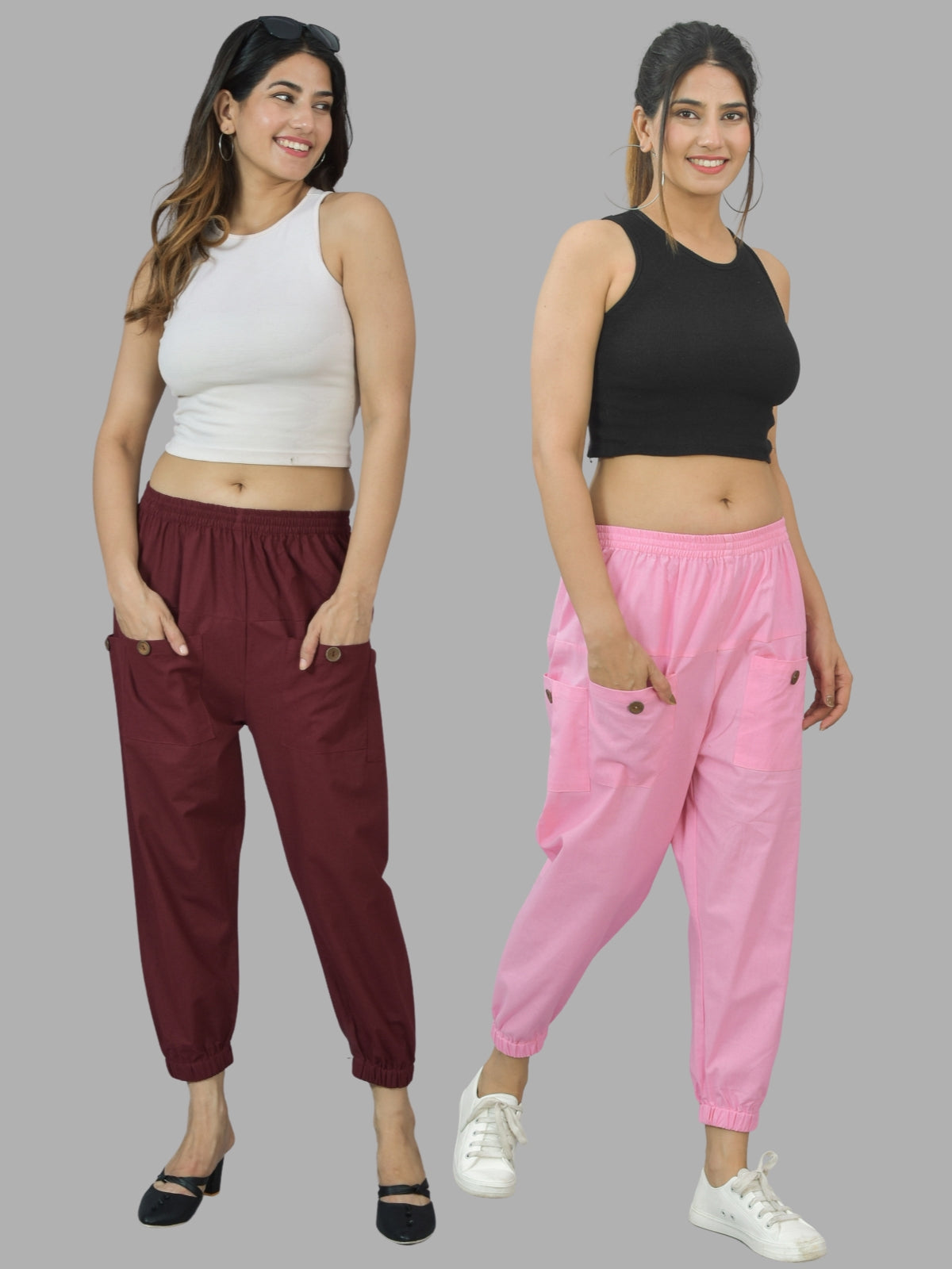 Combo Pack Of Womens Maroon And Pink Four Pocket Cotton Cargo Pants