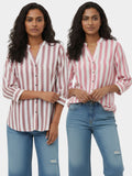 Discover effortless elegance with our Women’s Stripe Shirt featuring stylish shoulder pleats, 3/4th sleeves, and a classic button closure. Designed for both comfort and sophistication, this hip-length shirt offers a flattering fit for any occasion. Crafted from soft, breathable fabric, it blends timeless stripes with modern detailing, making it perfect for office wear or casual outings. Pair it with trousers or jeans for a chic, polished look that enhances your everyday style effortlessly.